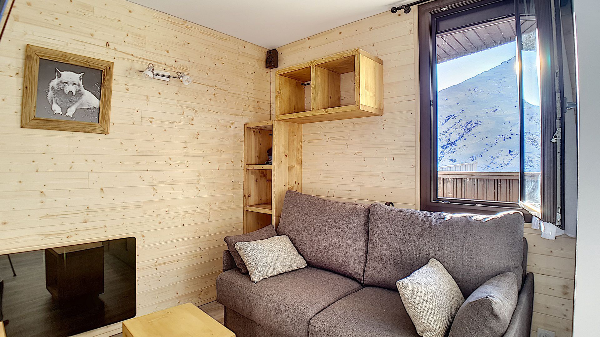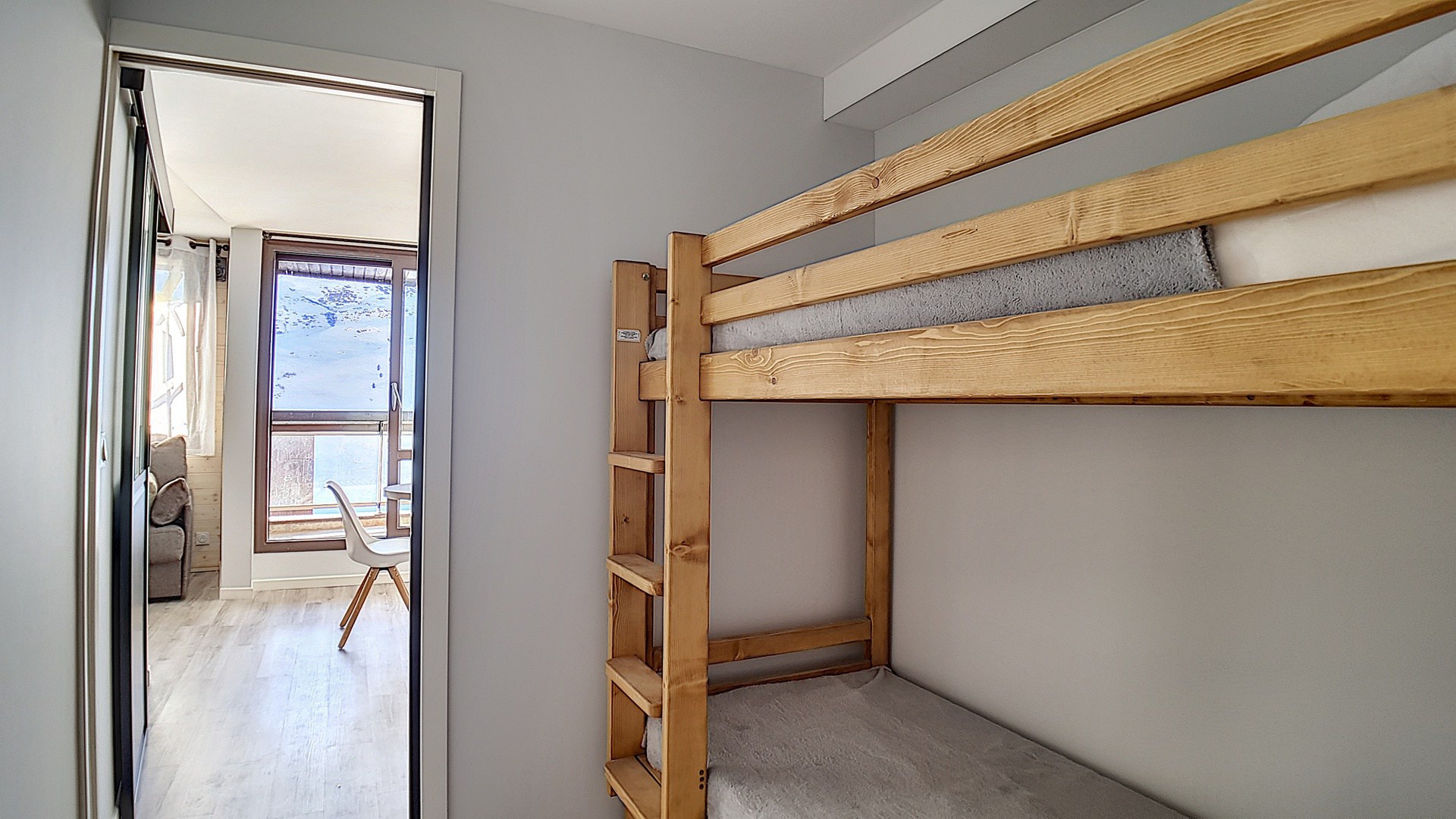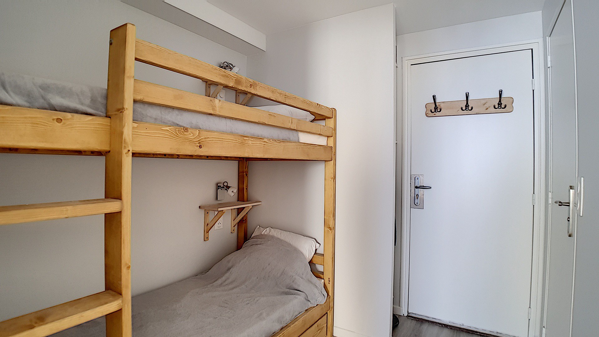 Coin montagne (dans l'entrée, séparée du séjour par une porte coulissante) : 2 lits 1 personne superposés (80*190cm).