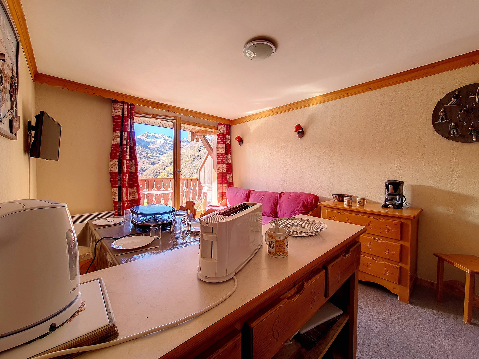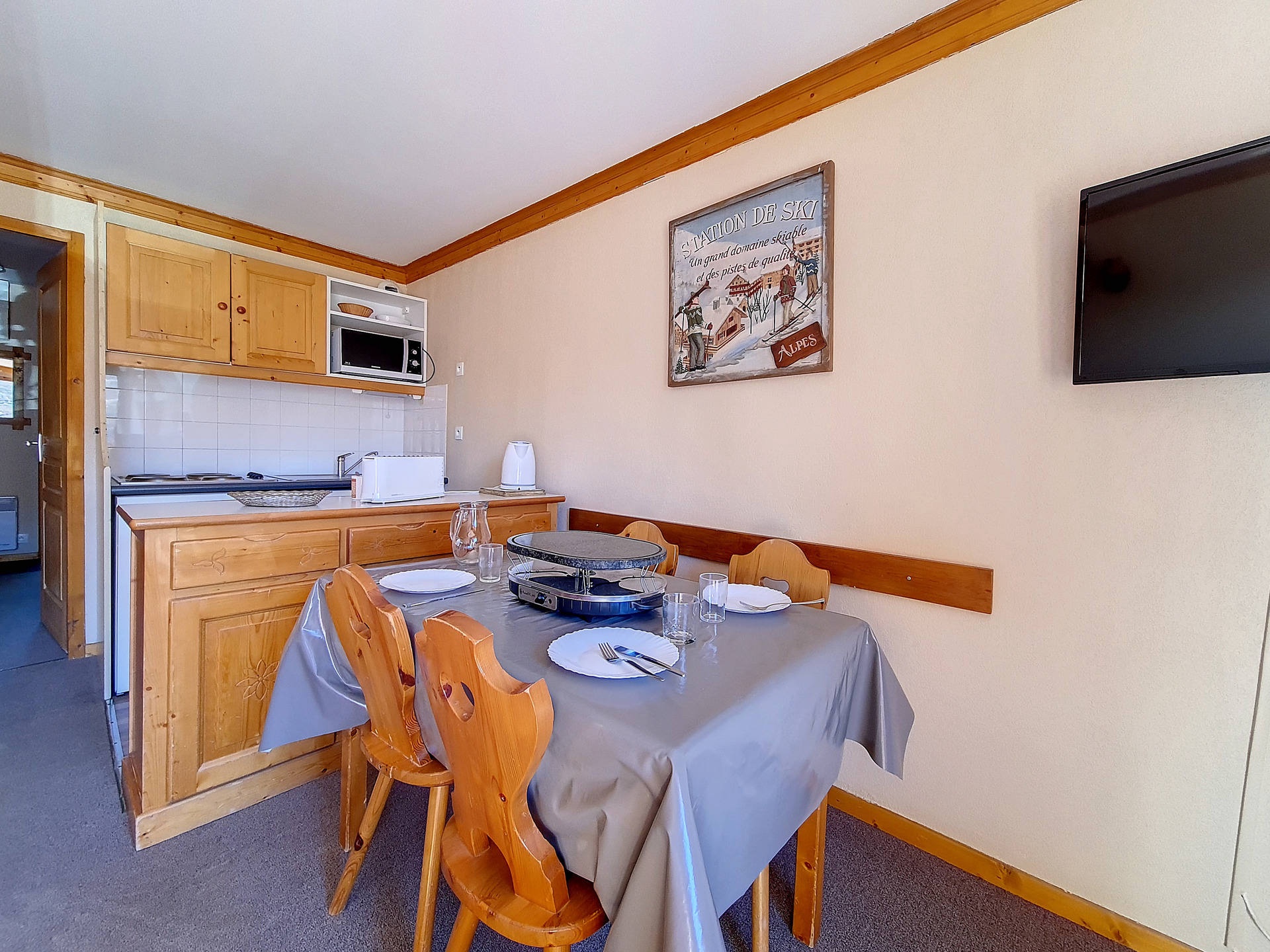 Séjour : 1 banquette-lit 1 personne et 1 lit gigogne 1 personne relevable. Equipé d'une télévision.