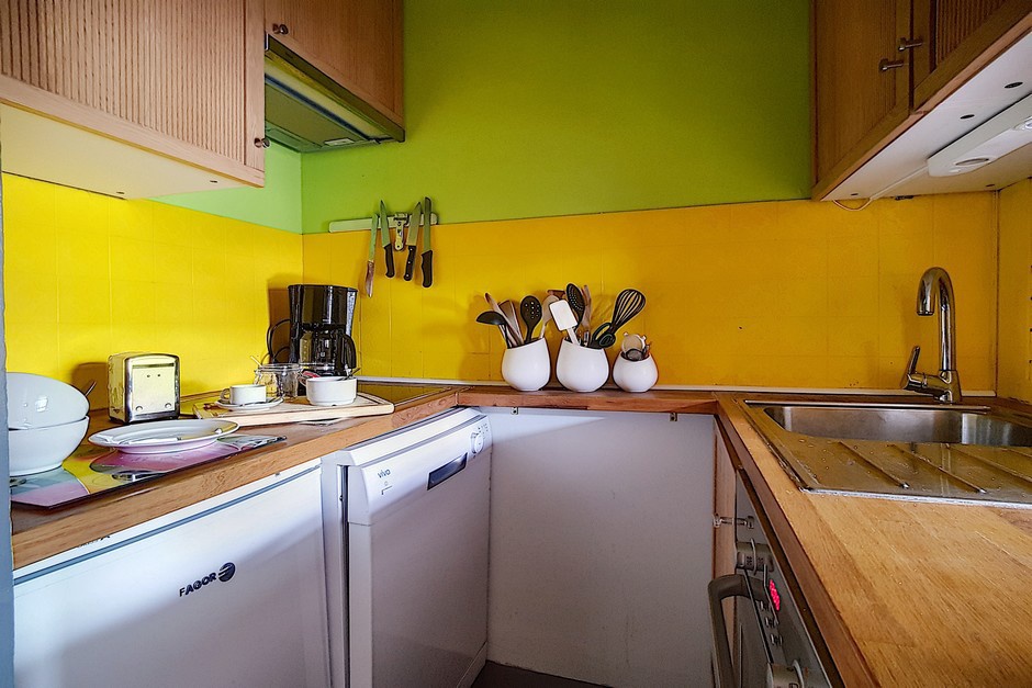 Cuisine équipée de 4 plaques vitro-céramiques, réfrigérateur, four traditionnel, lave-vaisselle, cafetière, grille-pain et bouilloire.