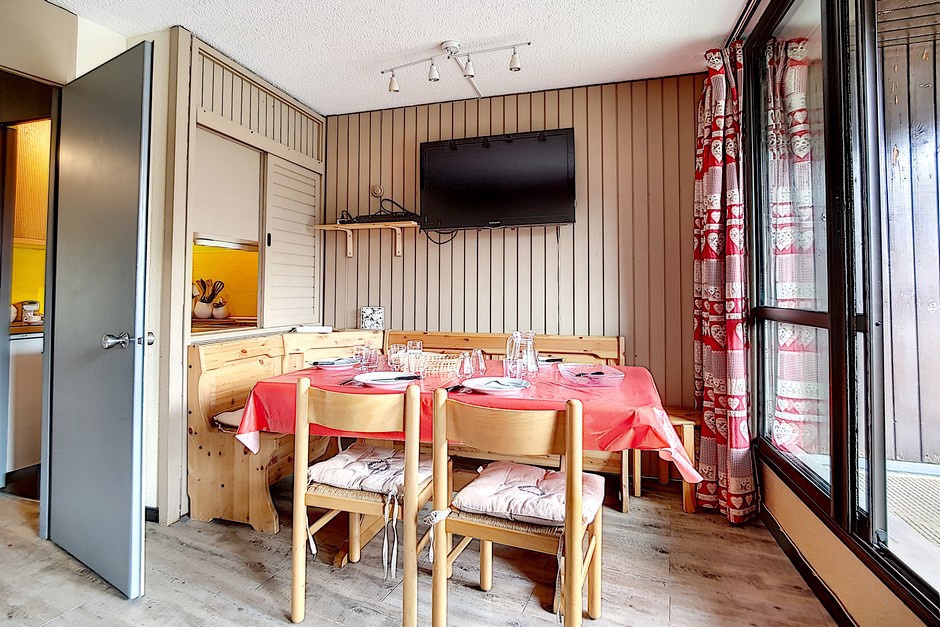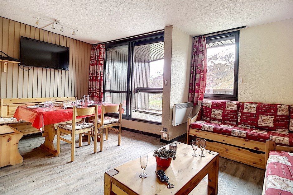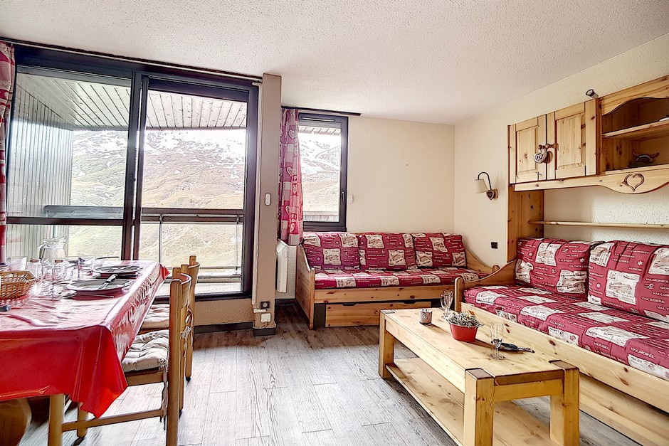 Appartement agréable de 36m², 2 pièces pour 5 personnes, départ skis aux pieds et un casier à ski. Il propose une double exposition et offre un balcon exposé ouest.