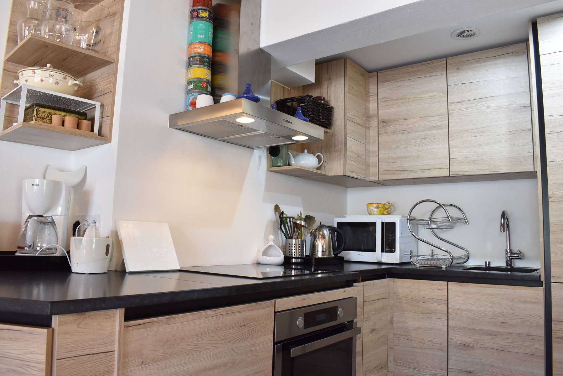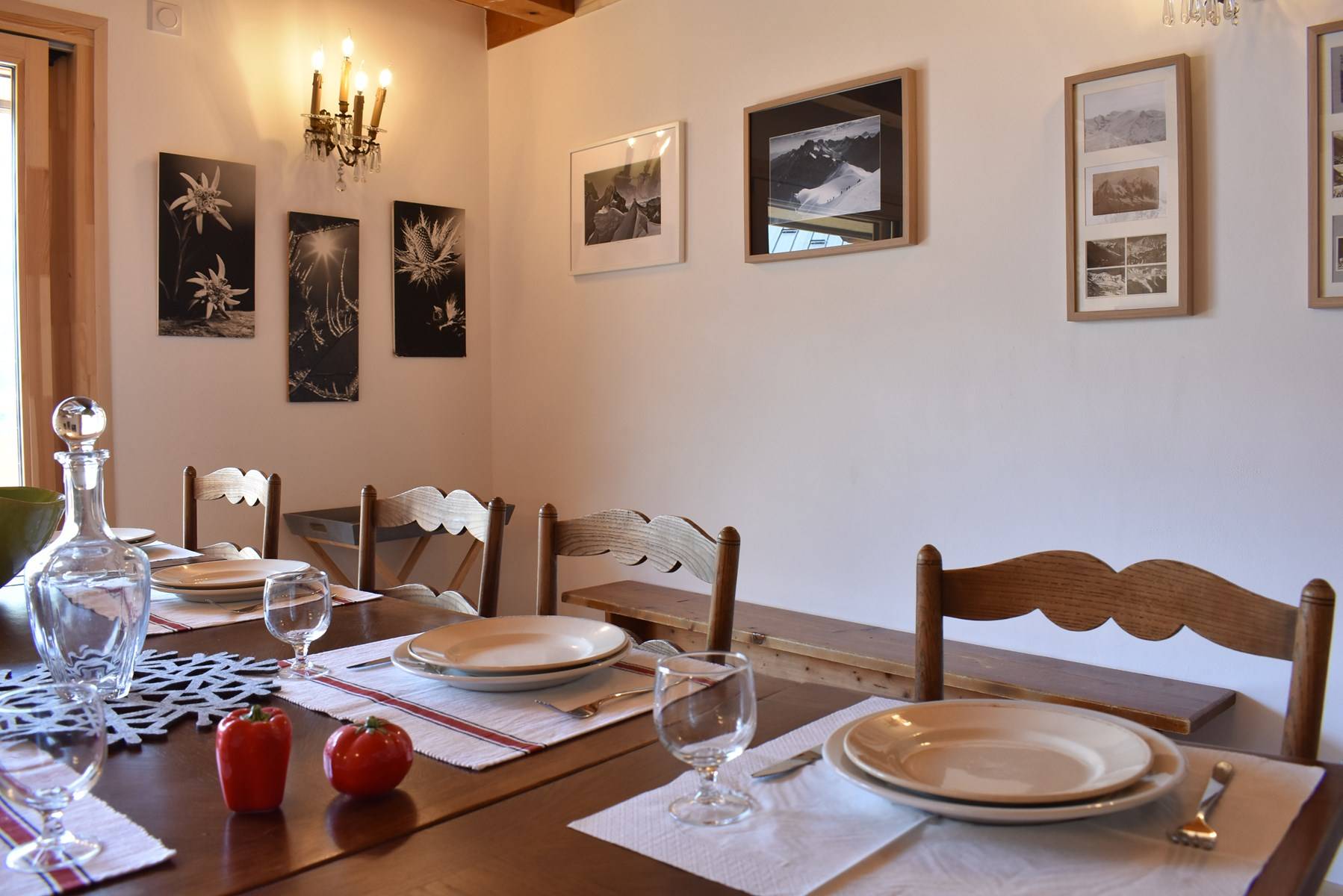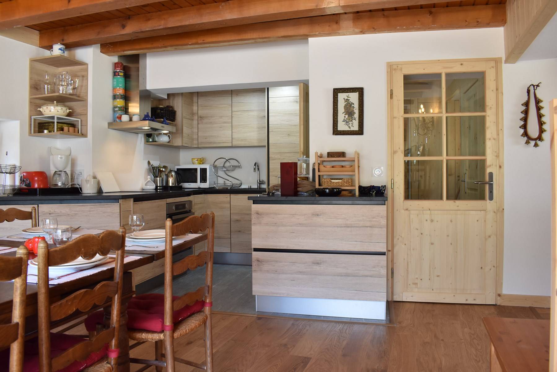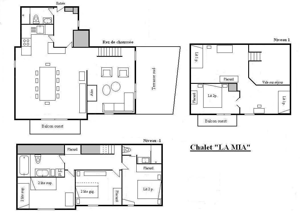 C'est un chalet sur 3 niveaux loué avec le ménage et linge inclus. Au niveau de l'entrée, il se compose d'une cuisine tout équipée ouverte sur le séjour avec un coin repas donnant sur un balcon ouest, un salon avec un canapé d'angle méridienne et 1 cheminée, une salle d'eau et un wc.