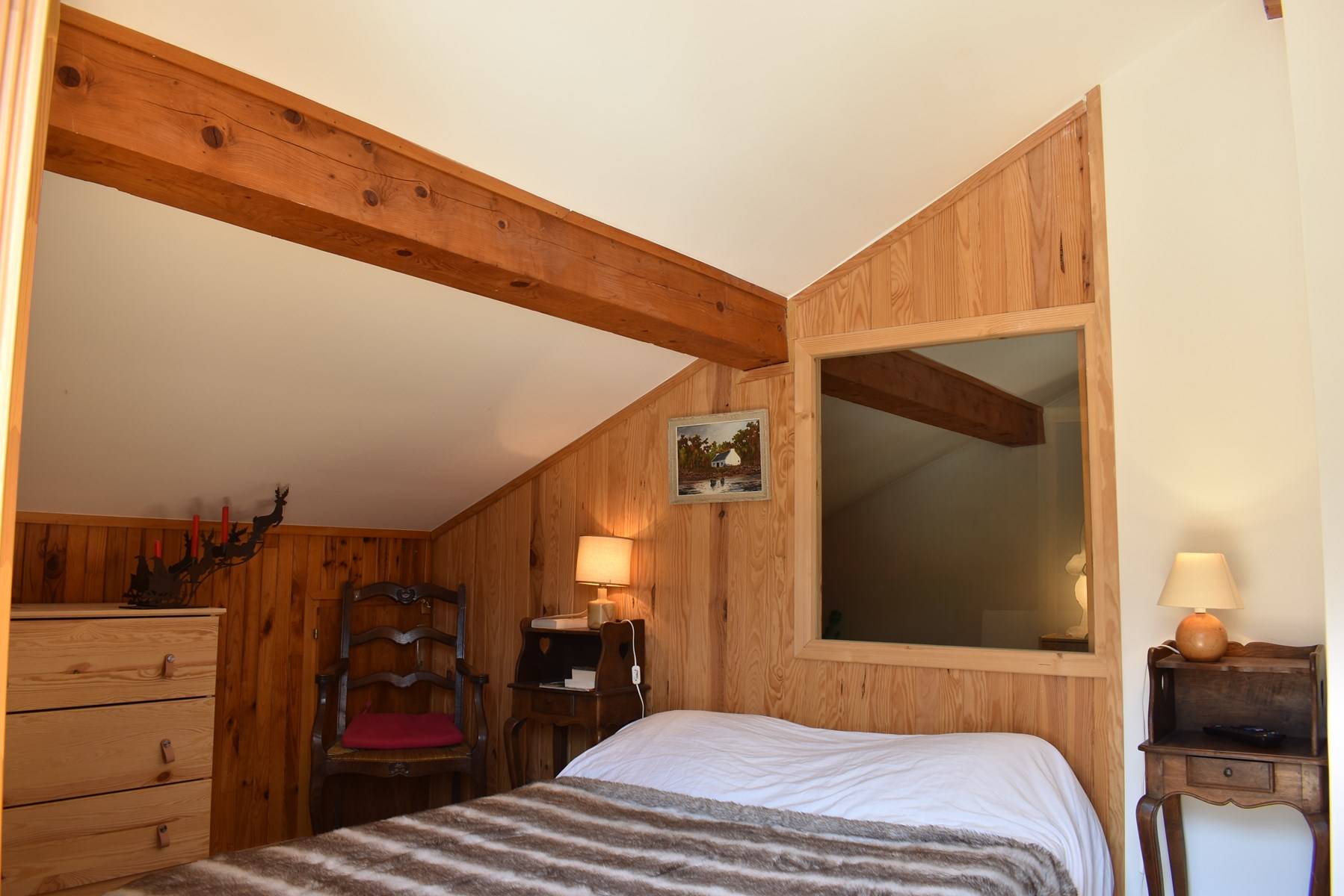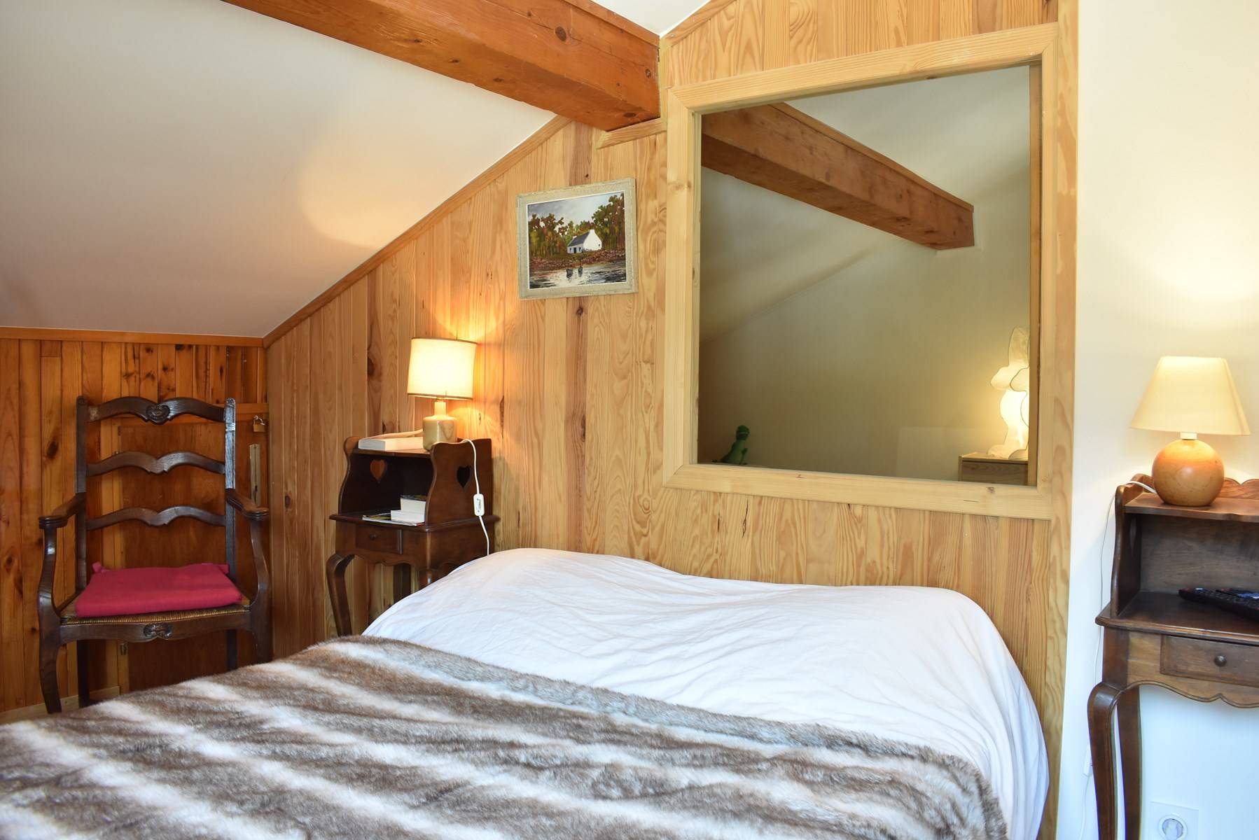 A l'étage, la mezzanine comprend 2 lits 1 personne mais aussi une chambre avec 1 lit 2 personnes (140) donnant sur un balcon Ouest. Pas de possibilité de réception TV.