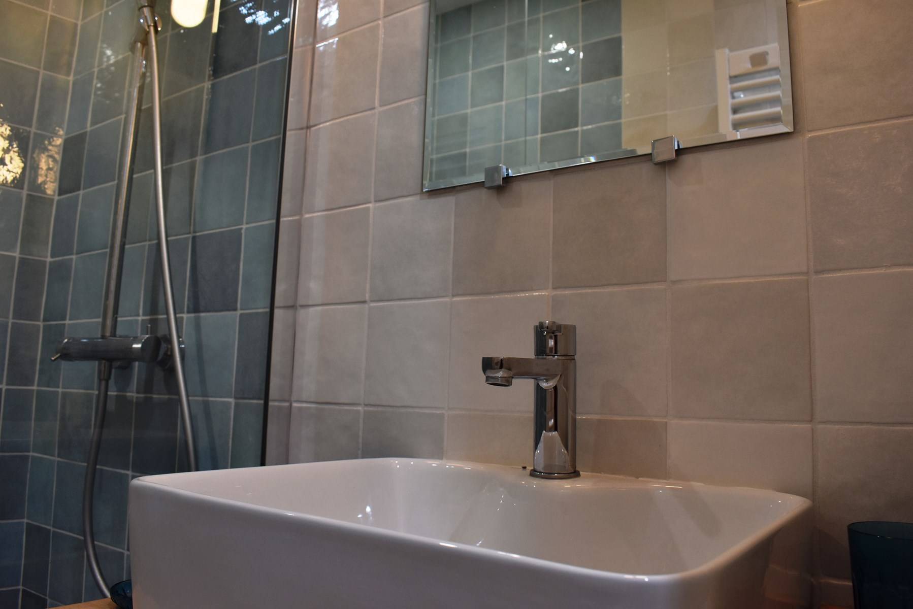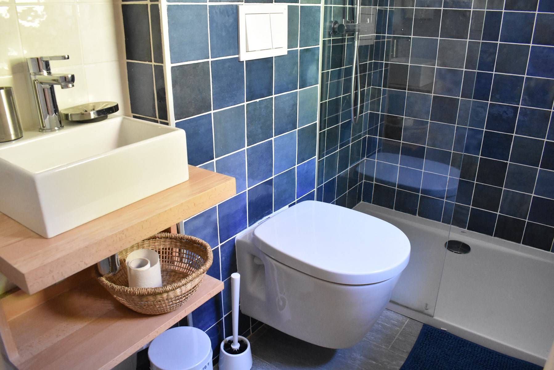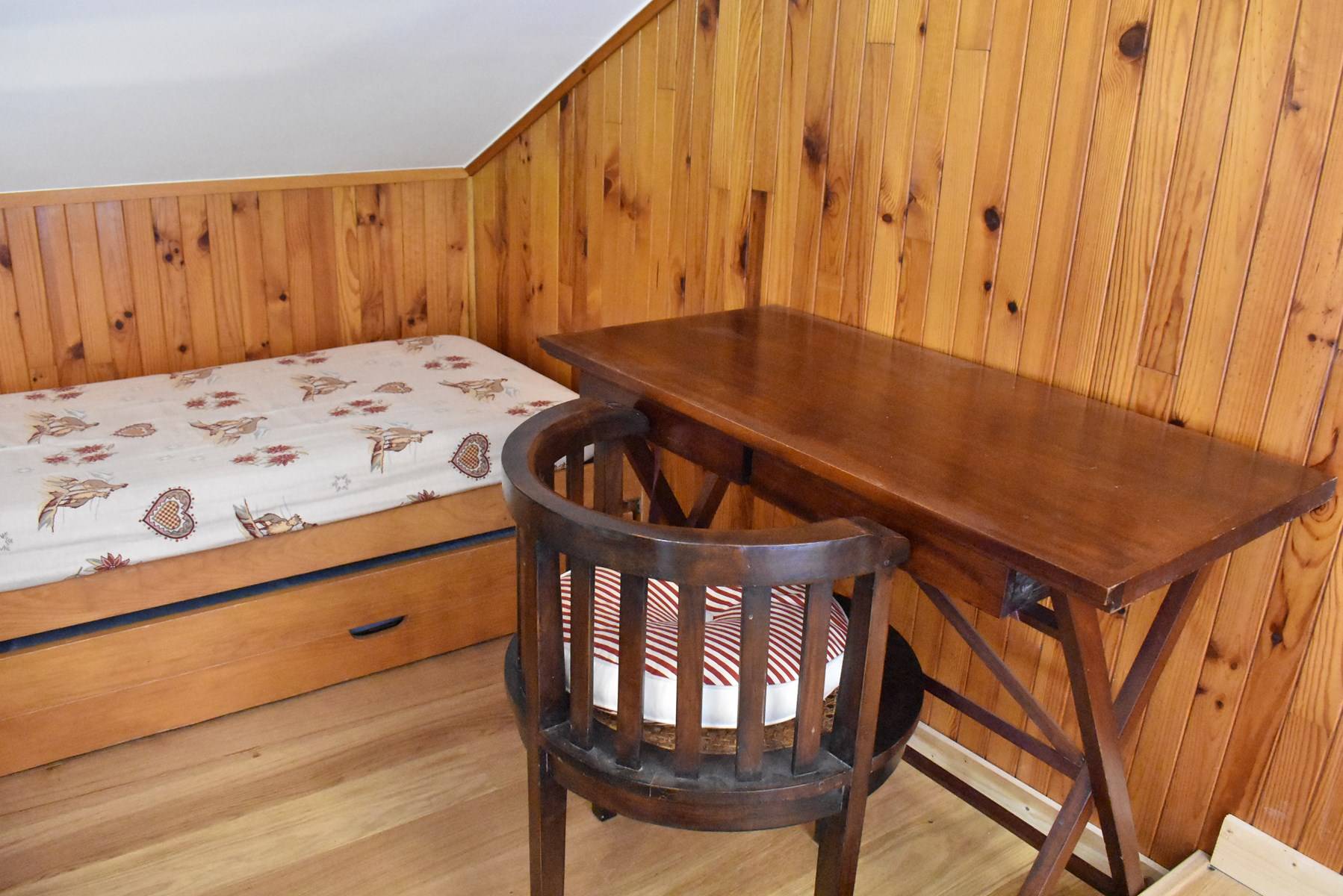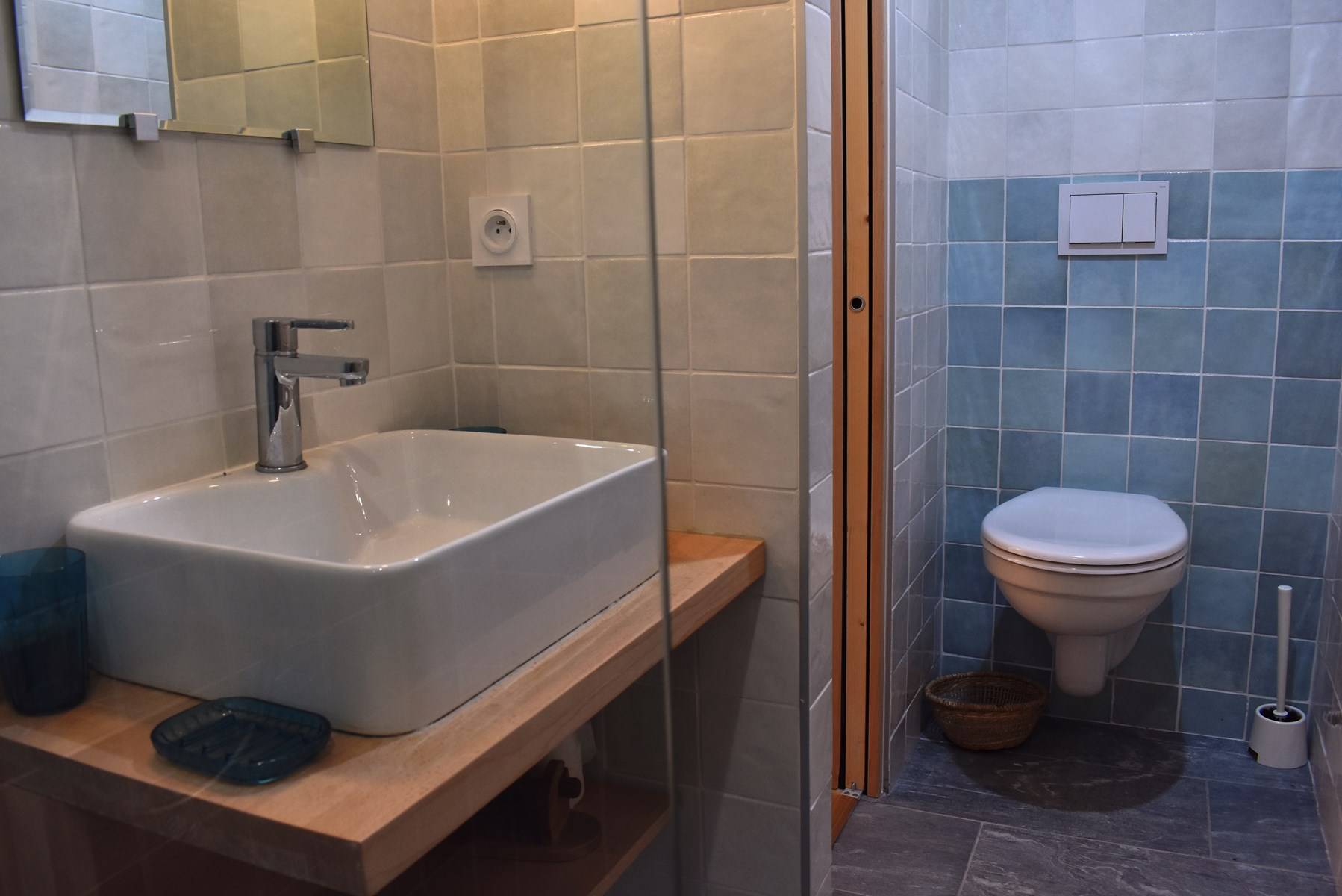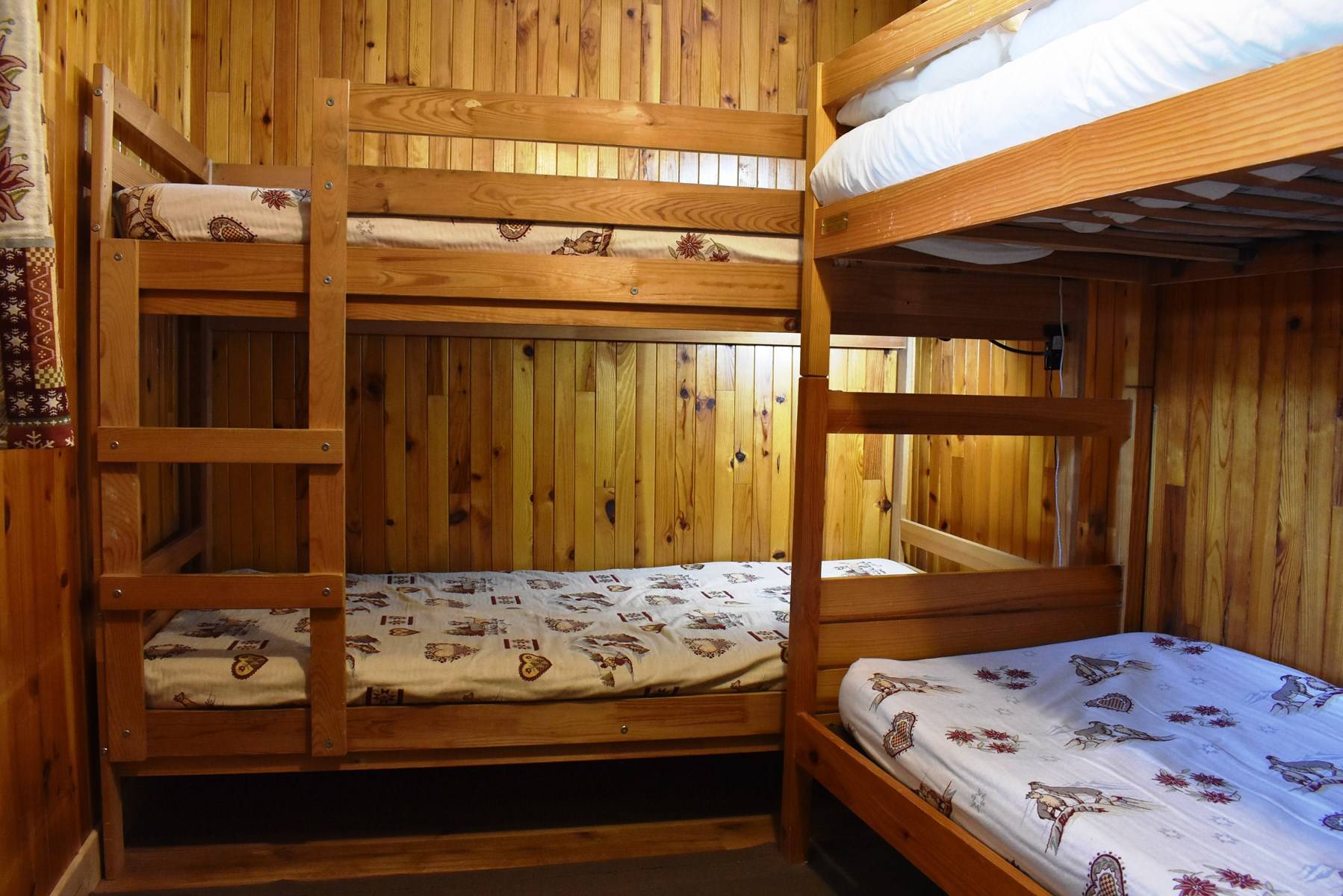 Au niveau -1, il comprend une chambre avec 1 ensemble de lits gigognes relevables, 1 chambre avec 2 ensembles de lits superposés, 1 chambre avec 1 lit double 140 disposant d'une salle d'eau et WC attenants. Au même niveau, vous trouverez également une salle de bains avec wc.