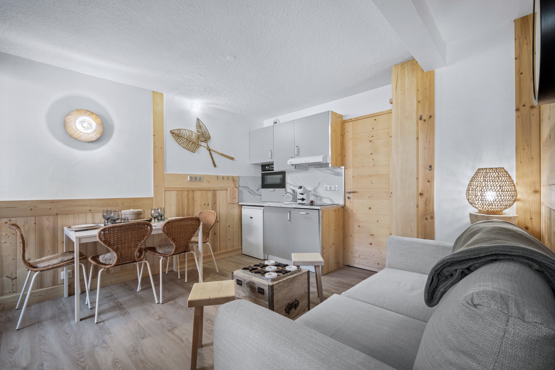 Cet appartement de 34 m² est situé au 4ème étage de la Résidence Les Hauts de Vanoise, proche du centre et des pistes. Rénové dans un style moderne et épuré, il dispose d'une chambre double et d'une chambre avec lits superposés.