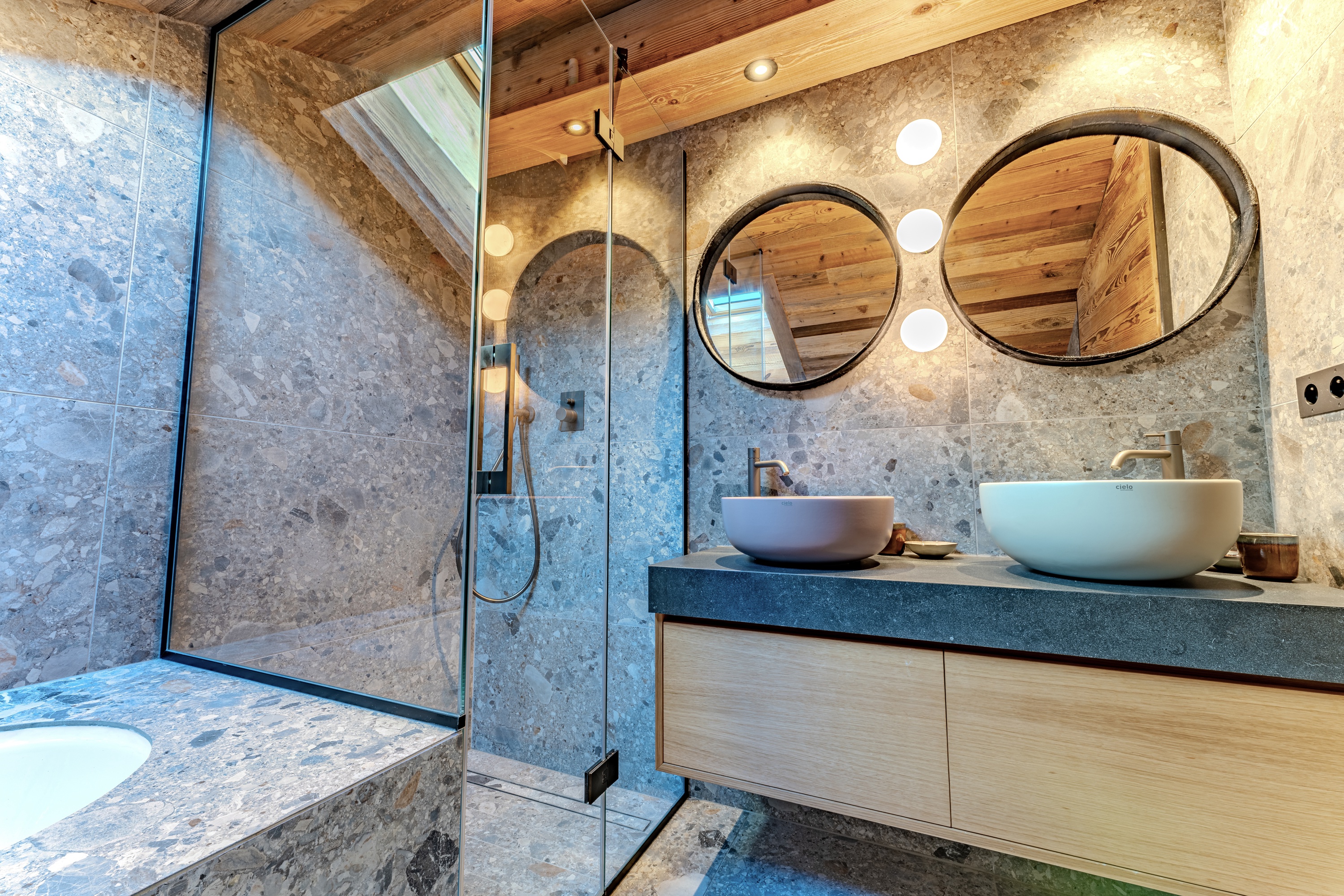 - Salle de douche, 1 vasque et 1 WC