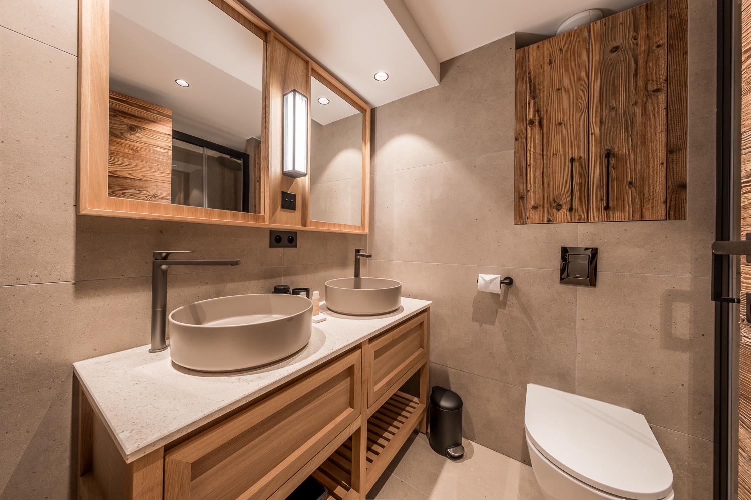- Salle de douche avec 2 vasques et 1 WC