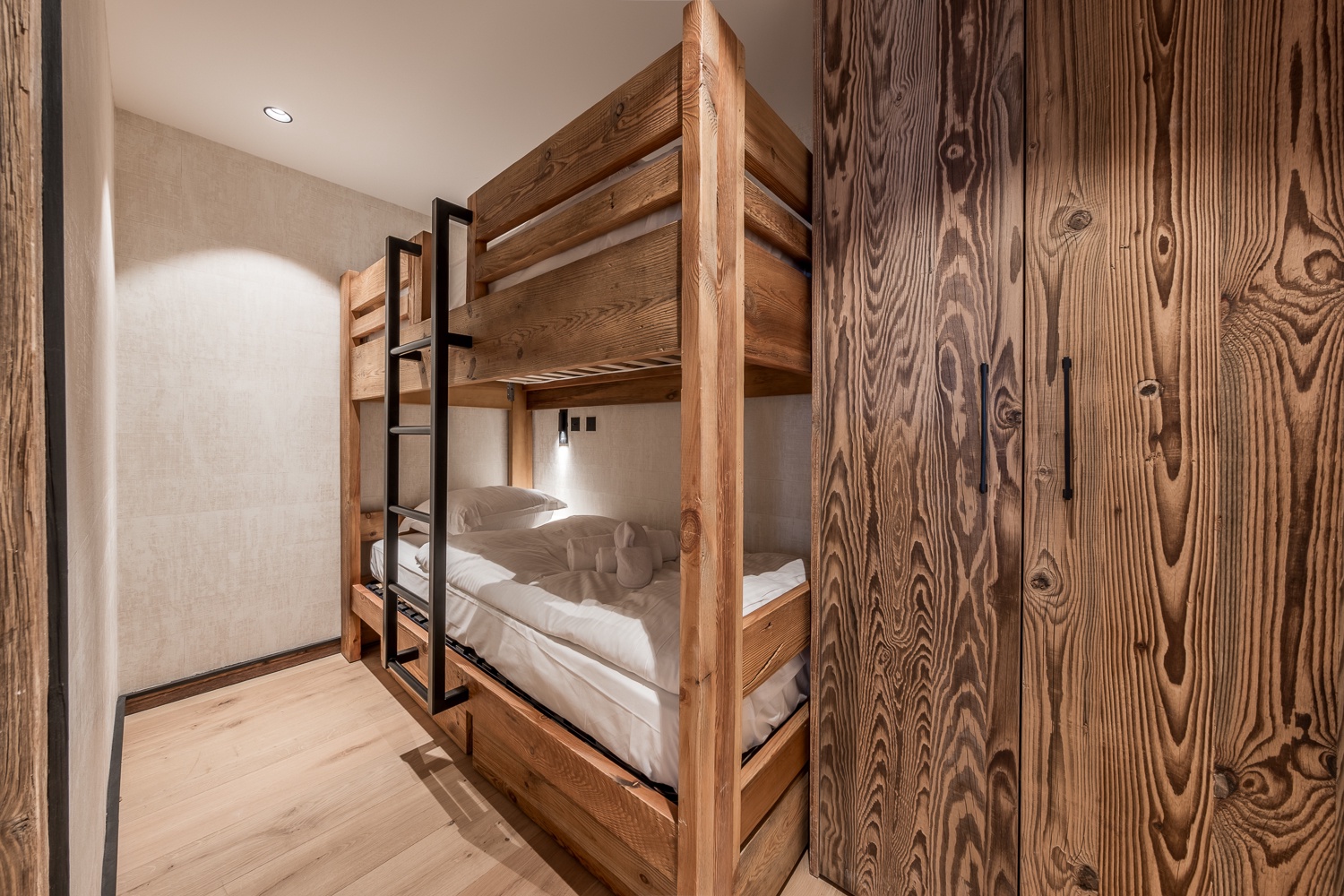 - Chambre 3 (cabine) : lits superposés avec 2 couchages simples (90x200)