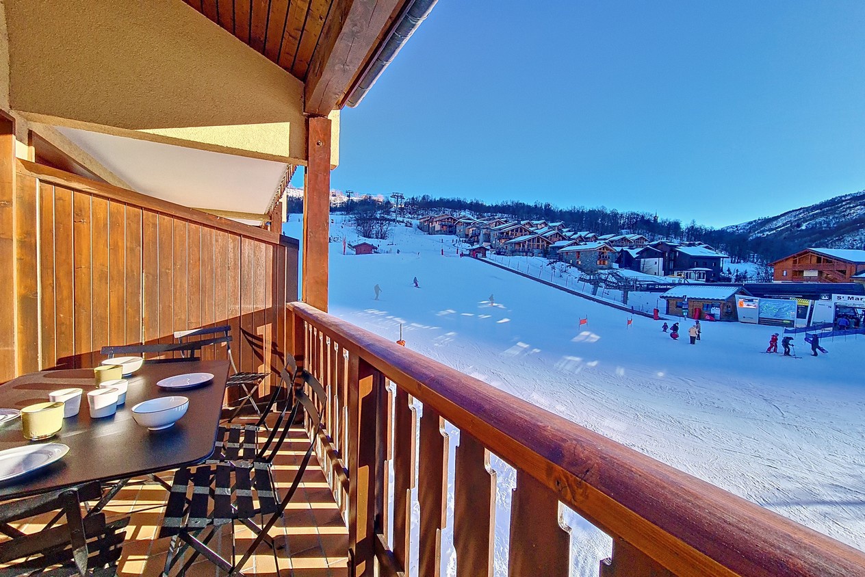 Il est situé au 4ème étage (sans ascenseur) et possède un balcon sud avec vue sur les pistes.