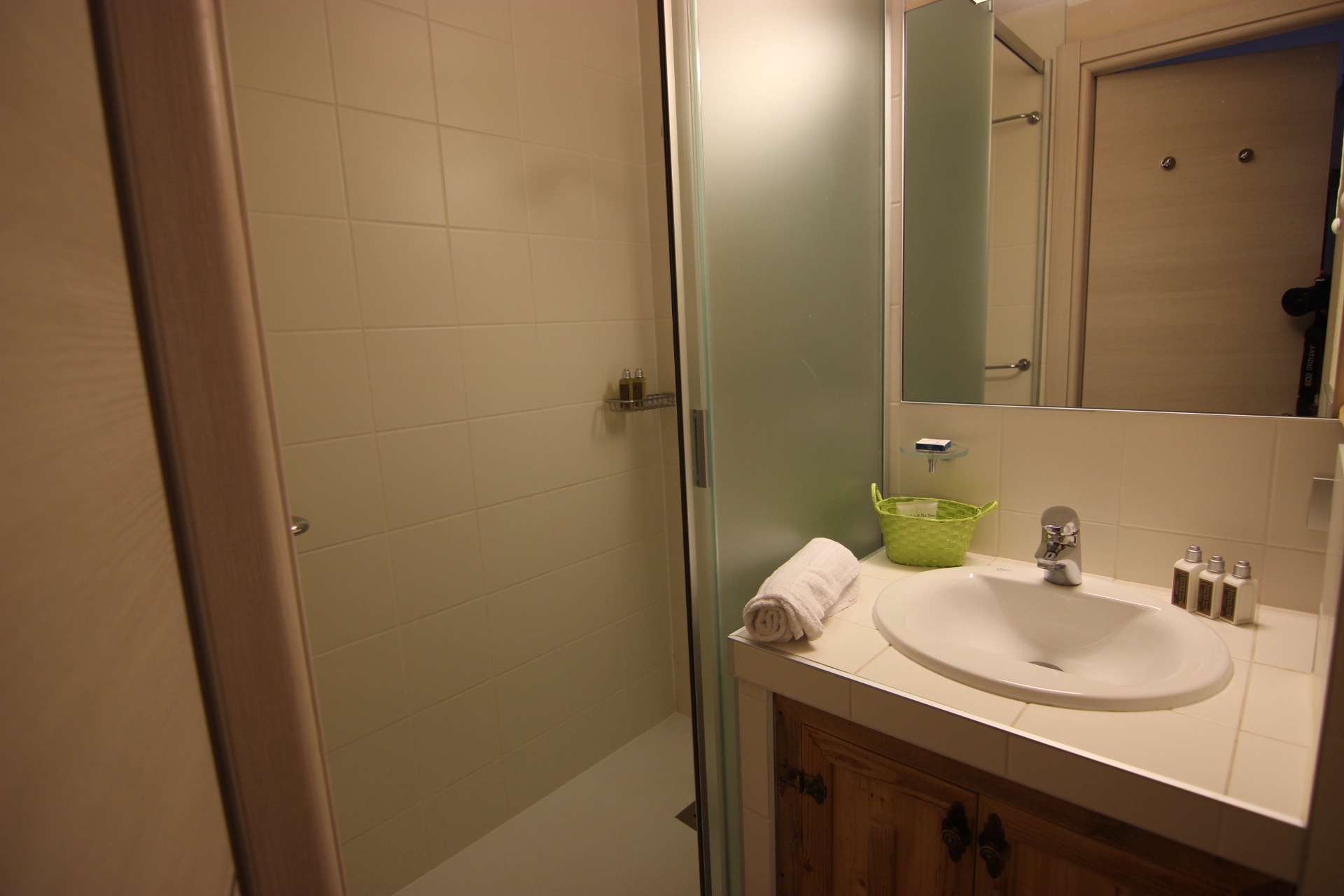 Salle de bain: douche, lavabo.