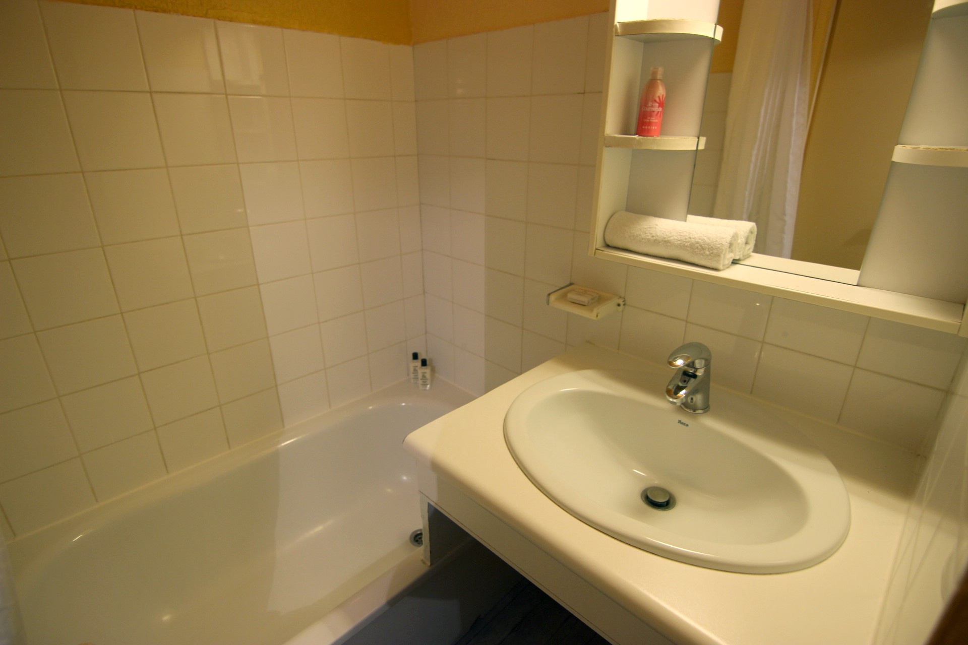 Salle de bain: baignoire, lavabo.