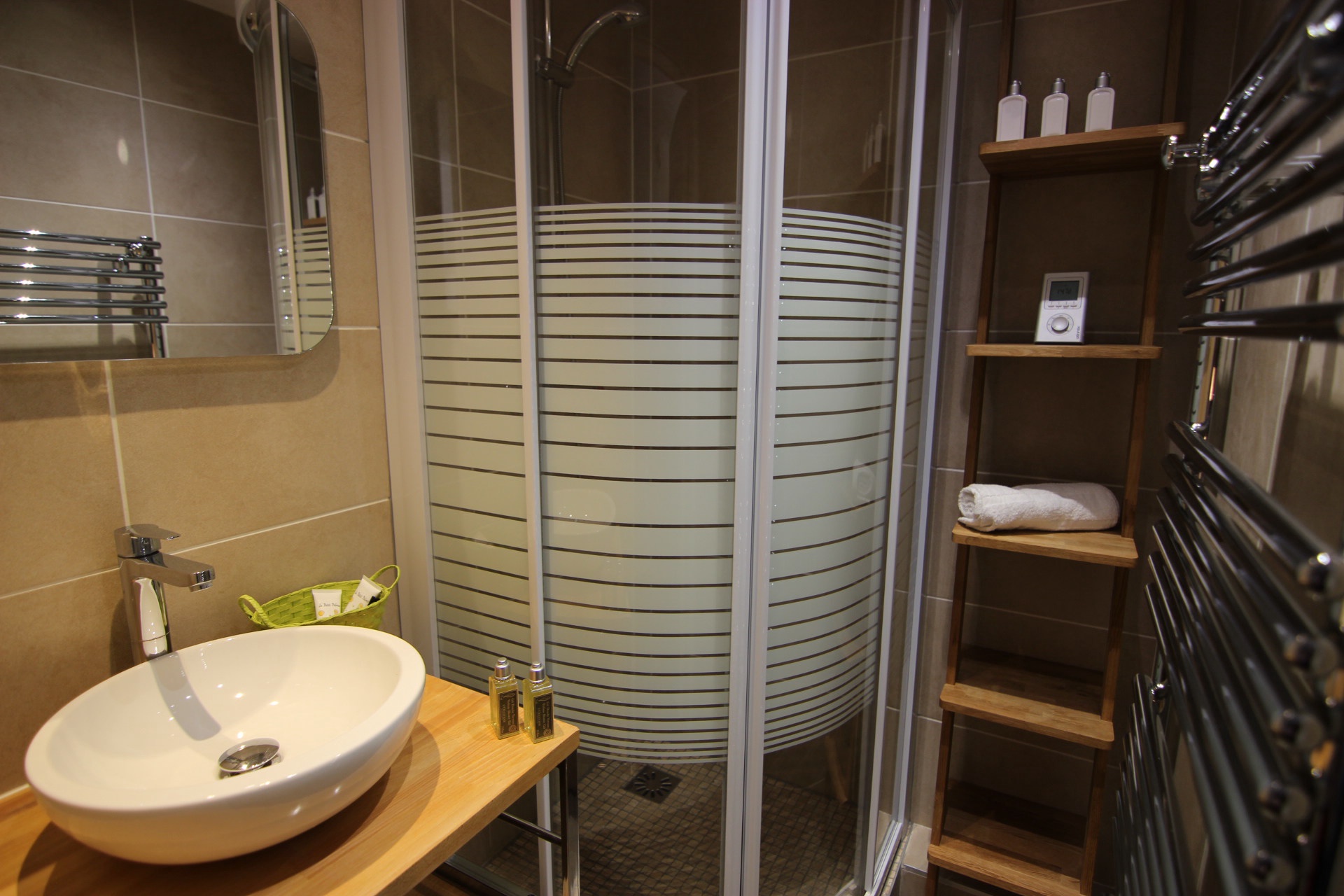 Salle de bain: douche, lavabo.