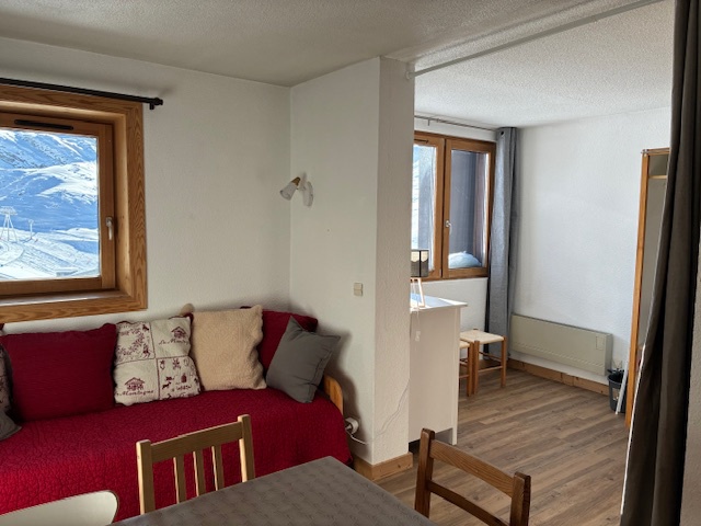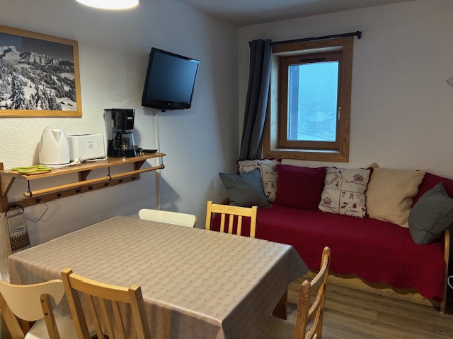 Séjour: télévision, coin nuit avec un canapé convertible en un lit double.