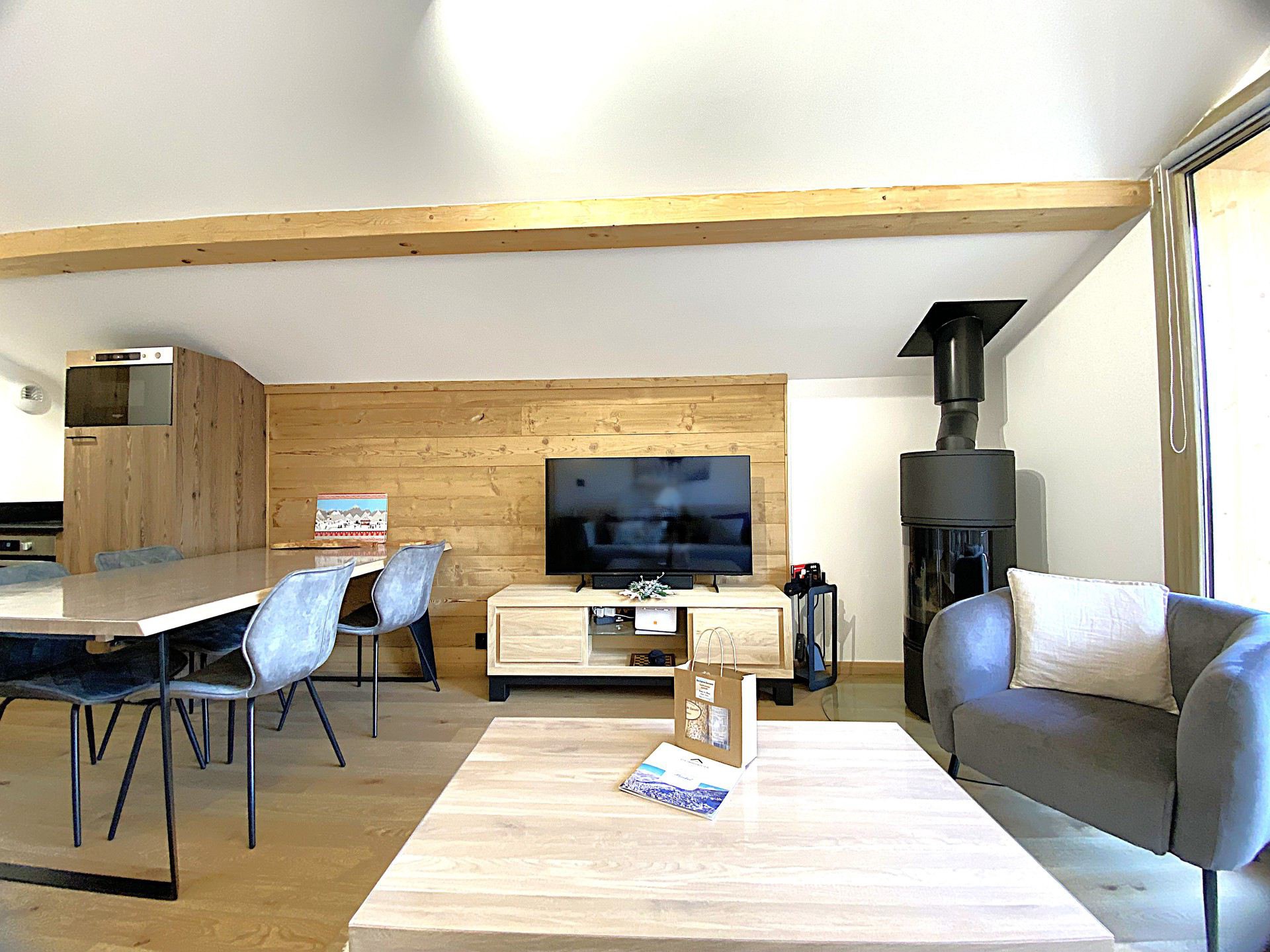 Une télévision, un lave linge, un casier à ski, un poêle à bois, WIFI inclus, un sèche chaussures et une place de parking.