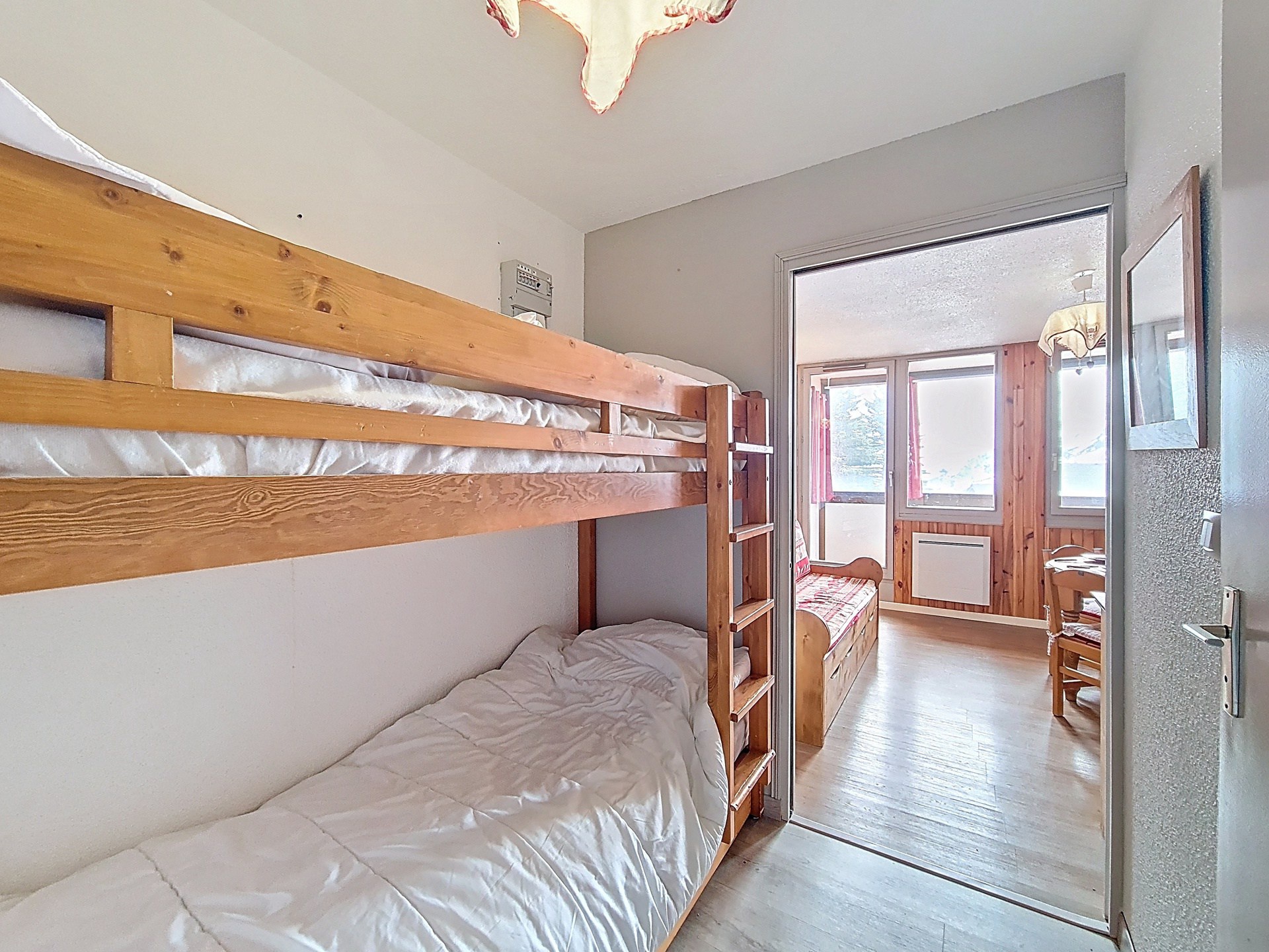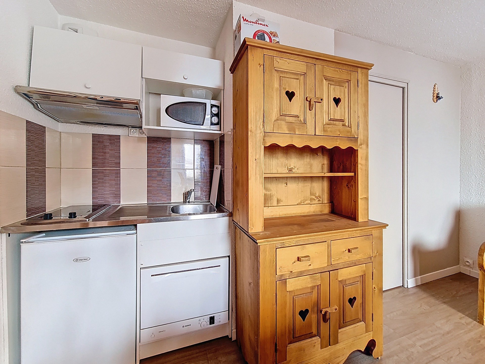 Studio de 22m² pour 4 personnes. Il est situé au 3ème étage de la résidence et possède un balcon sud fermé.