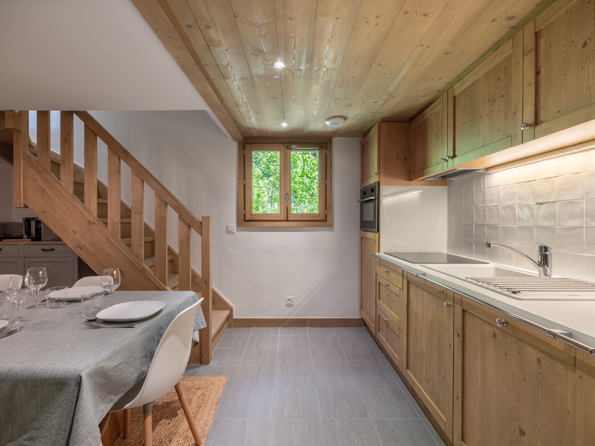 - Cuisine ouverte (plaque induction, four-micro-ondes, réfrigérateur, lave-vaisselle, grille pain, machine à café.
