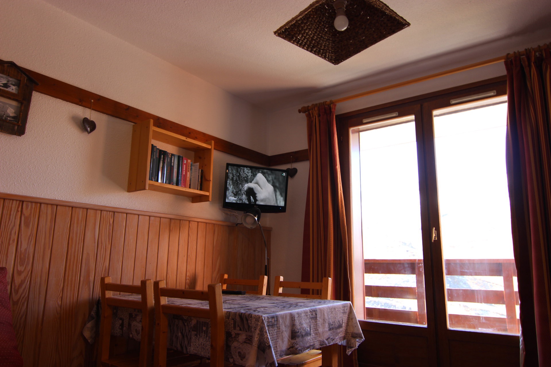 Séjour: télévision, banquette.
