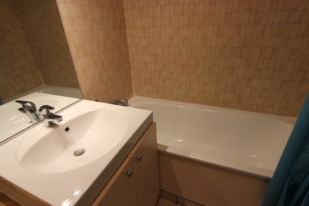 Salle de bain: baignoire, lavabo.