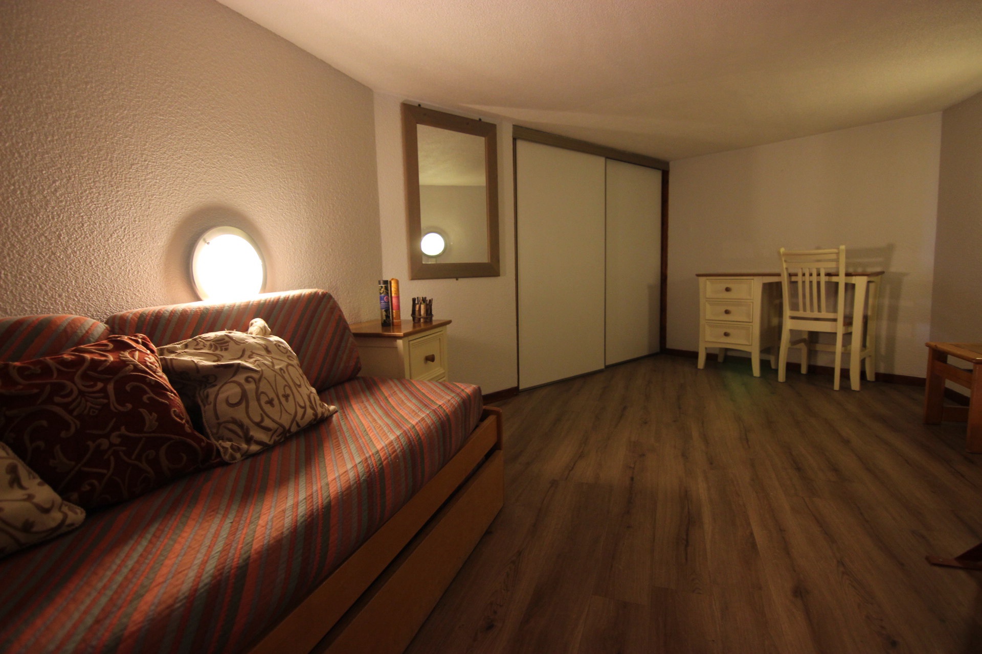 Cabine: banquette lit gigogne (convertible en deux lits côte à côte).