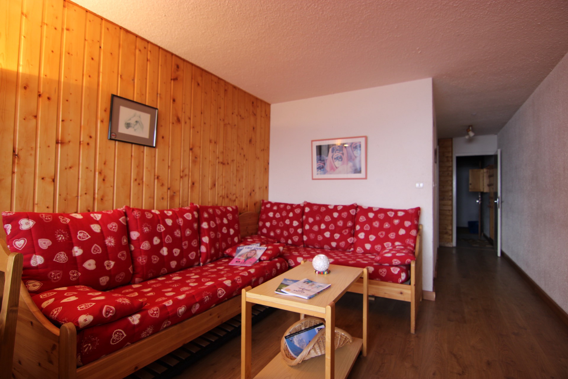 Séjour: télévision, banquette gigogne (convertible en deux lits simples côte à côte).