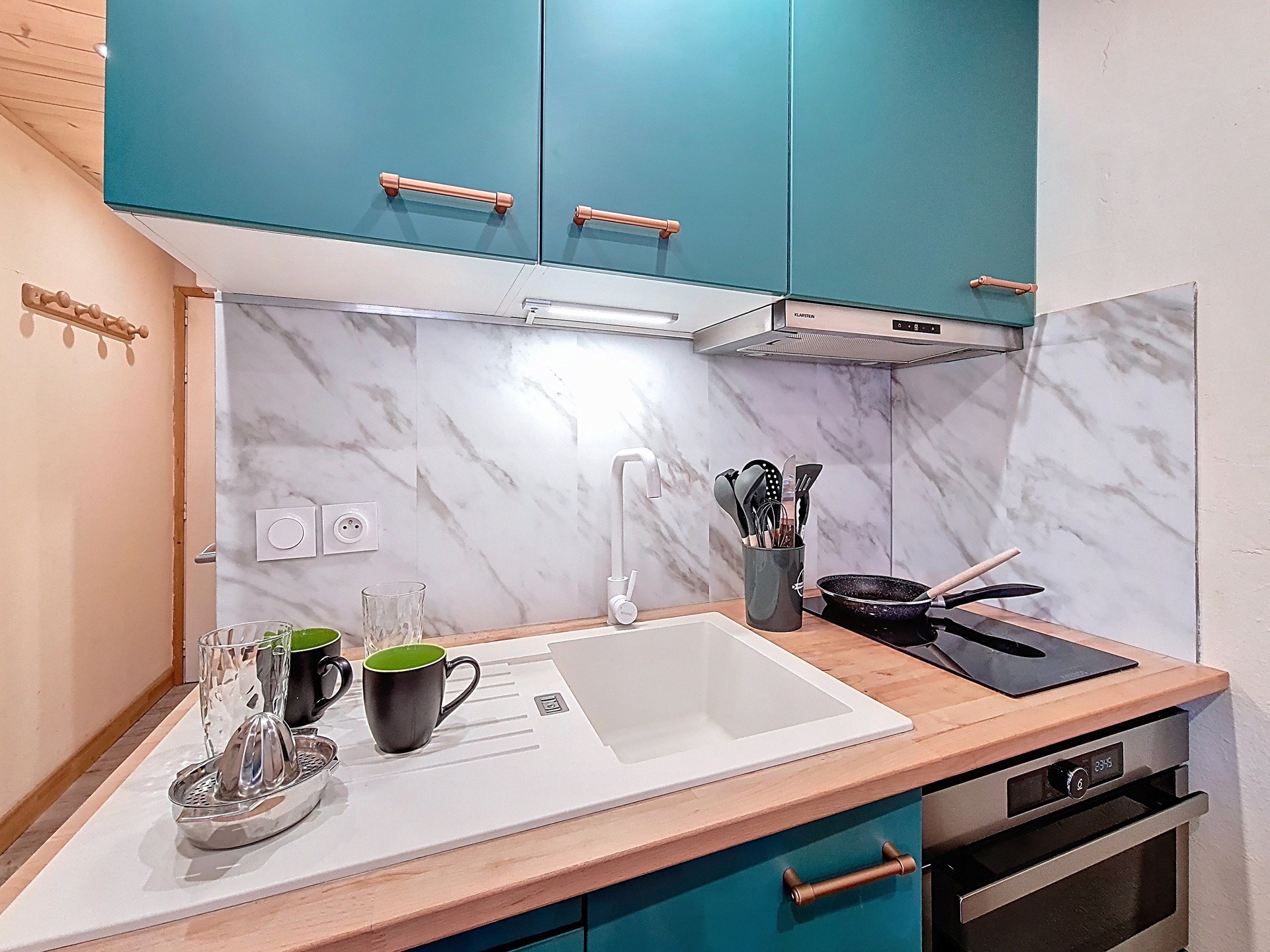 Cuisine ouverte : entièrement équipée avec 4 plaques de cuisson, un four micro-ondes grill, réfrigérateur, grille pain, cafetière et bouilloire.