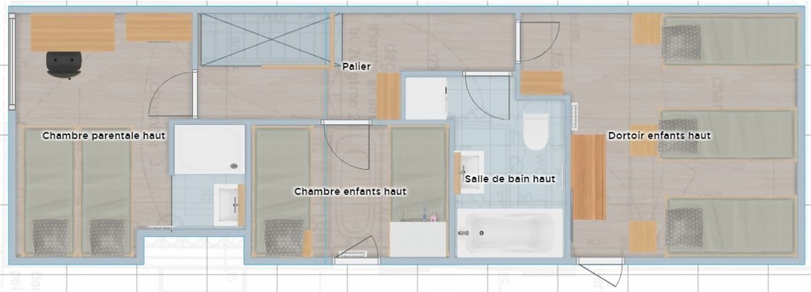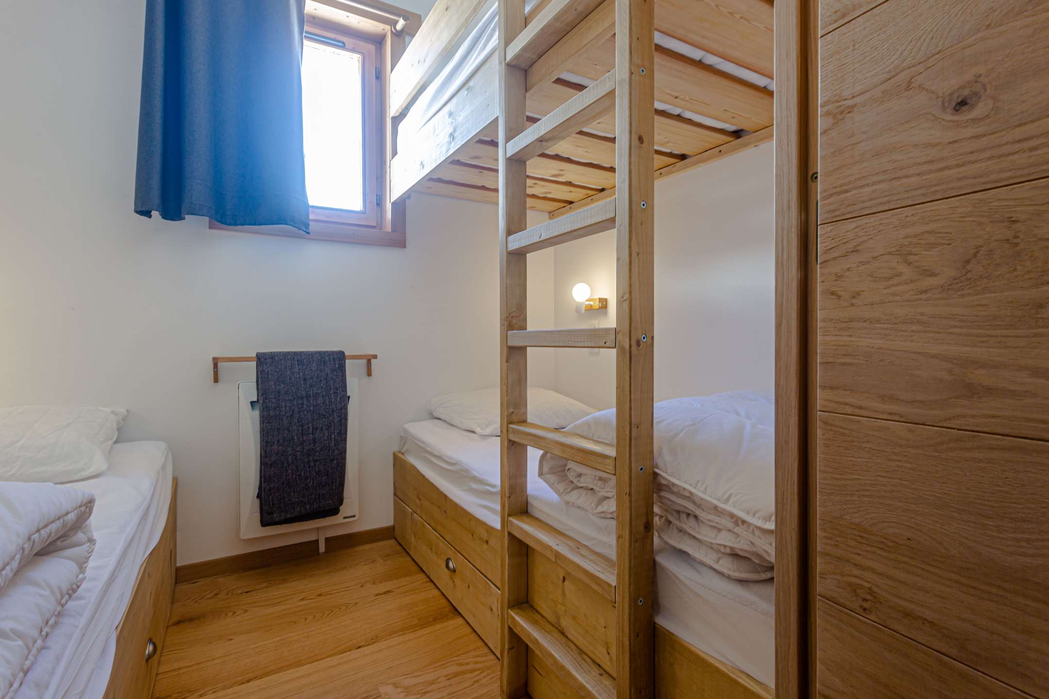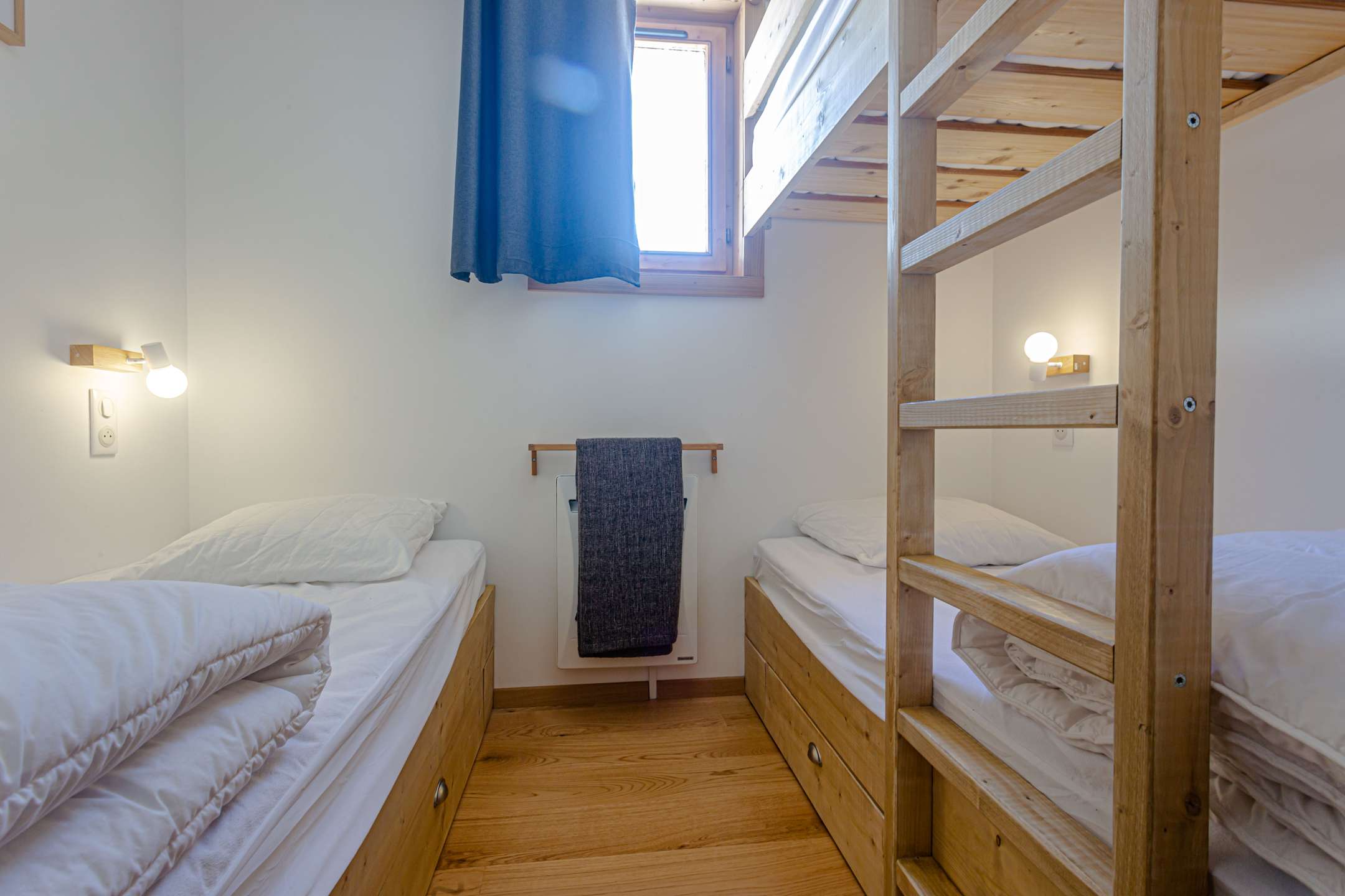 - 1 chambre avec un lit superposé et un lit simple, rangements sous les lits,