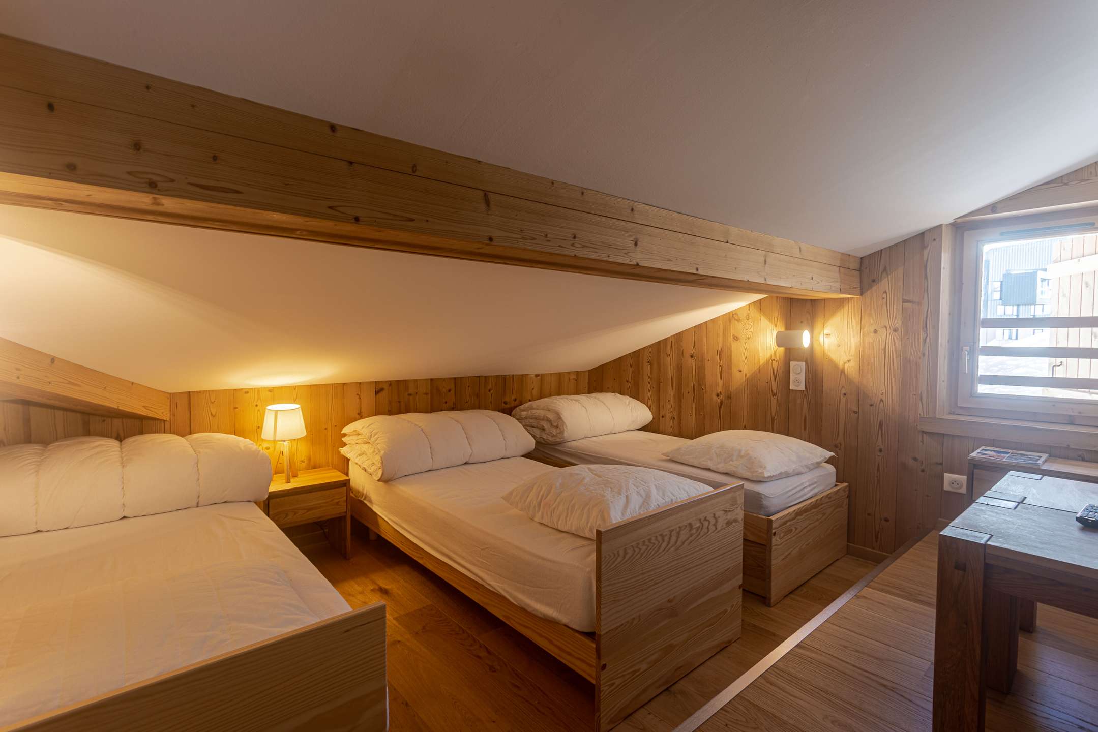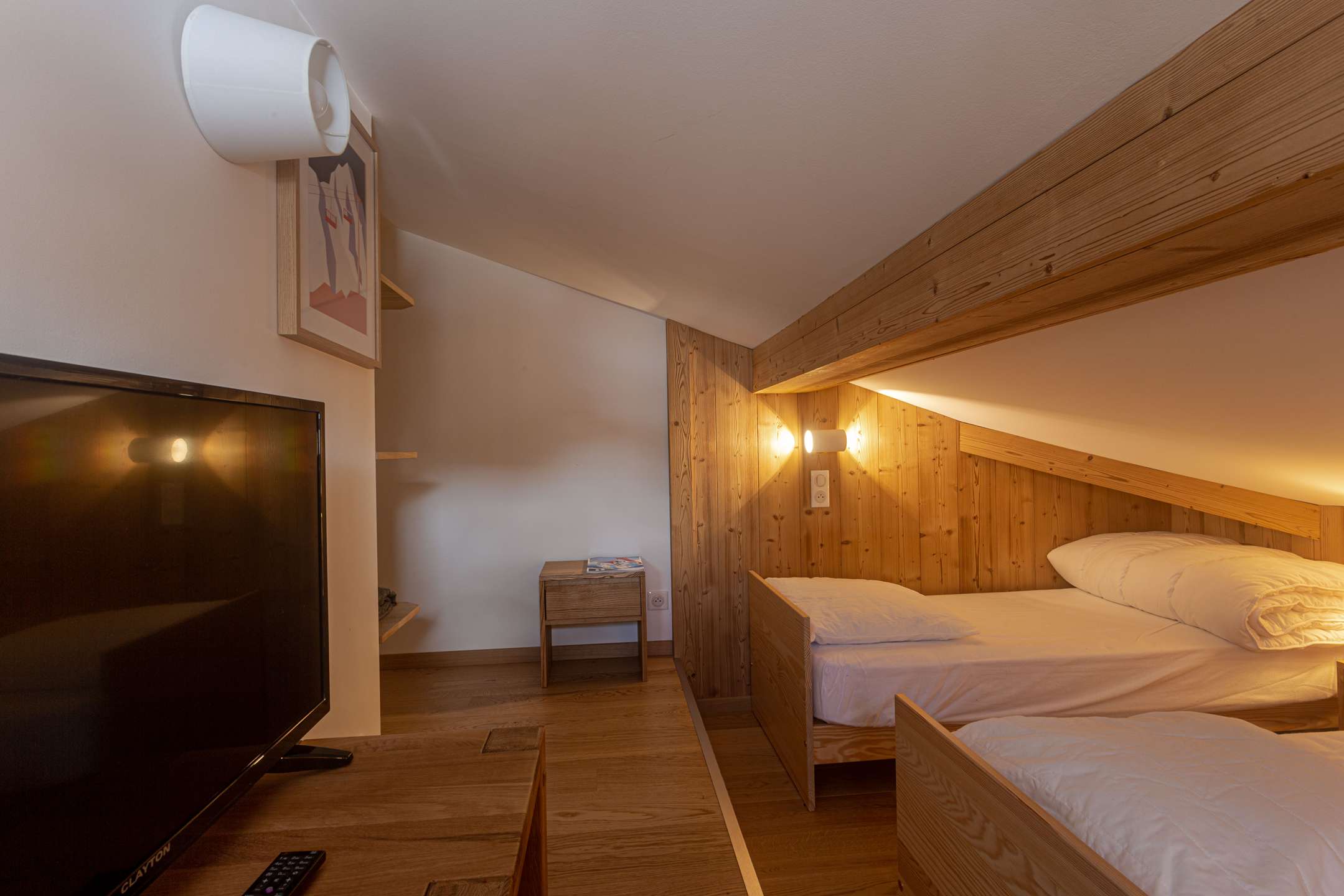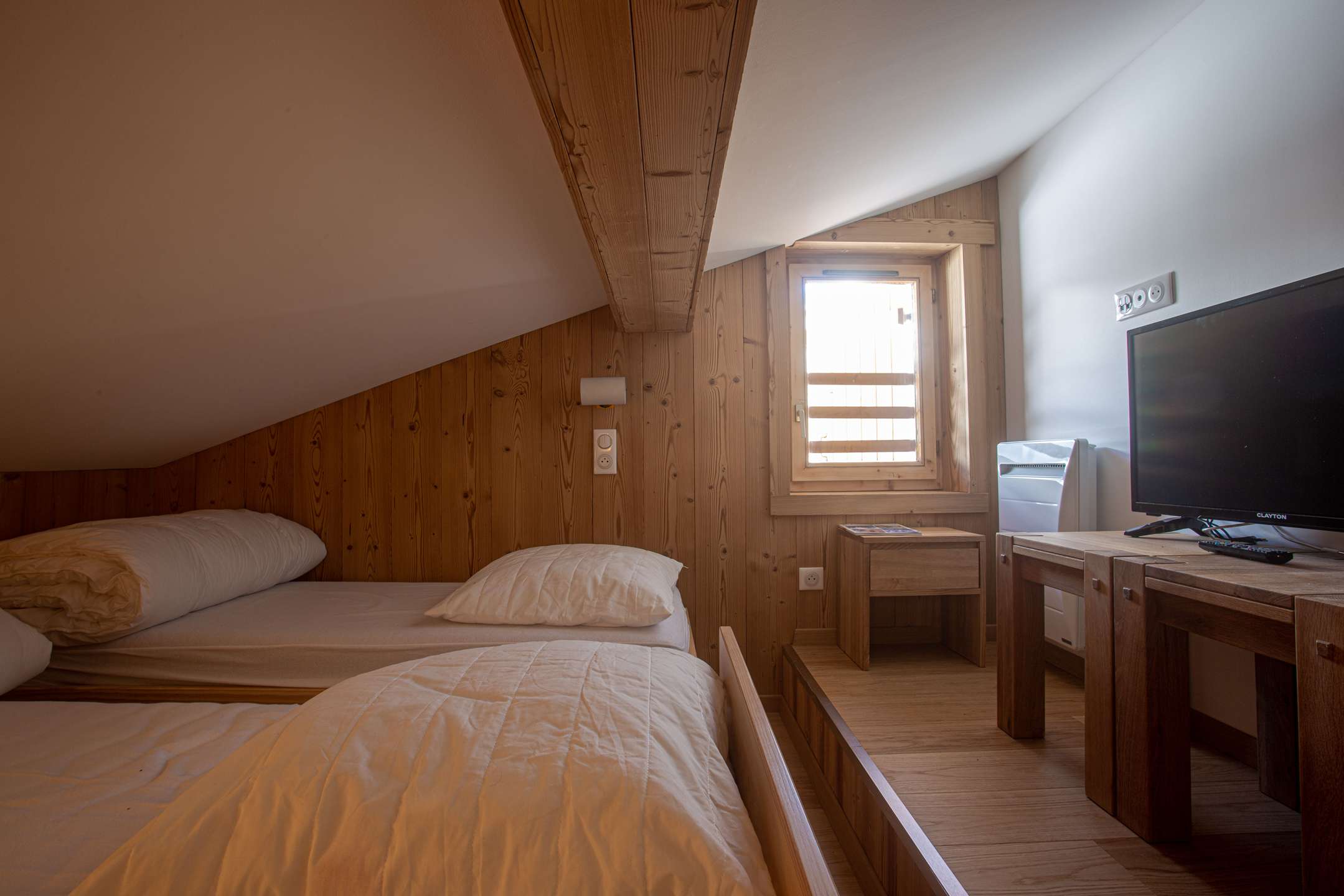 - 1 dortoir sous rampants avec 3 lits simples et TV, cet espace est déconseillé pour des adultes ou personnes de grande taille,