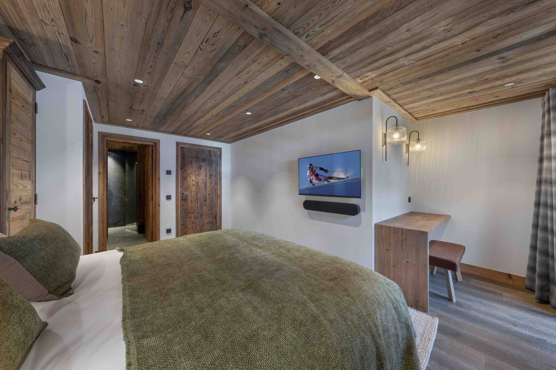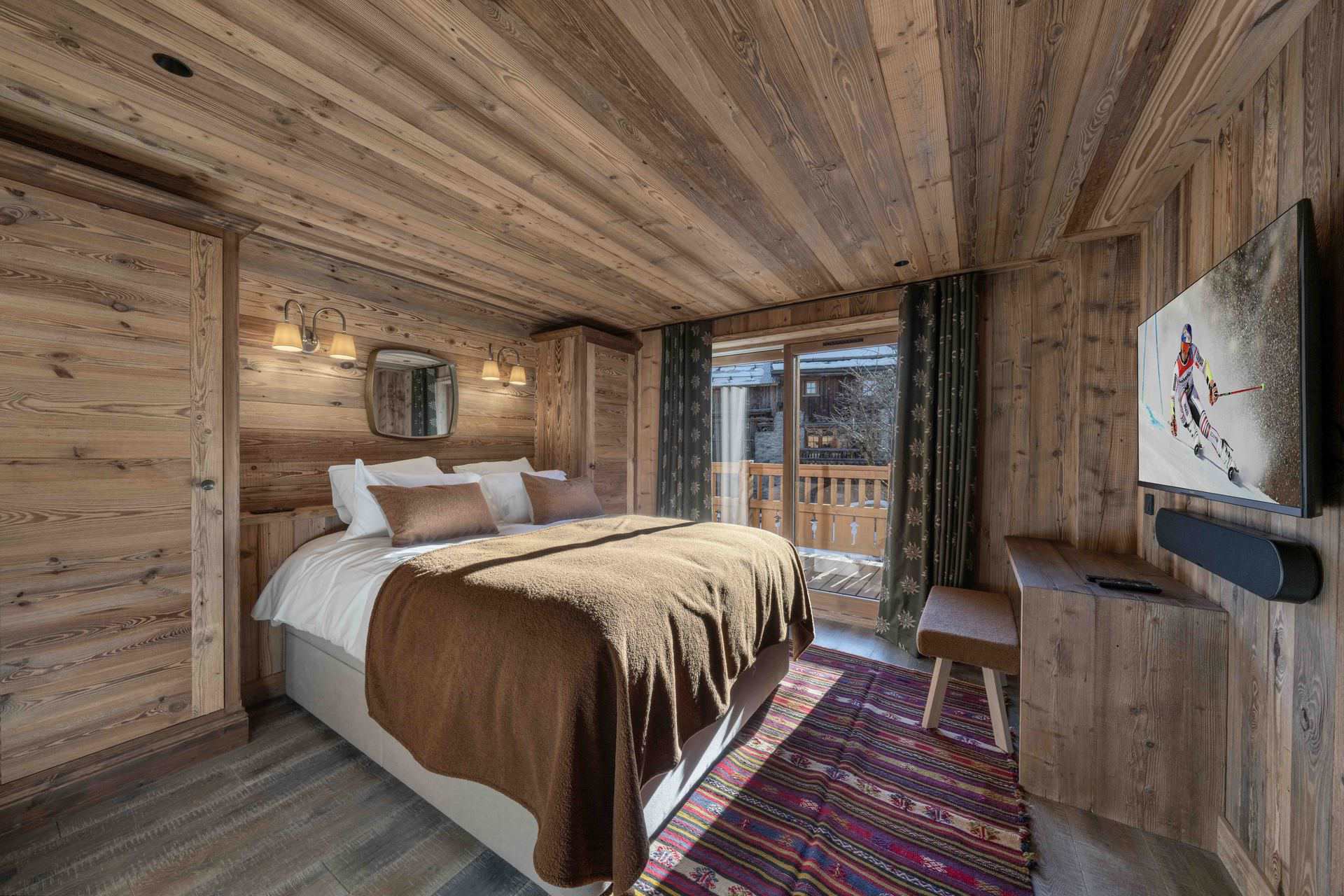 Chalet RHODO mitoyen, d'environ 323 m², disposant de 5 chambres et un dortoir, pour 12 personnes. Il est situé à 145m de l'arrêt de ski-bus gratuit qui mène à Méribel centre et à 250m de la télécabine l'Olympe qui mène directement au front de neige de Méribel.