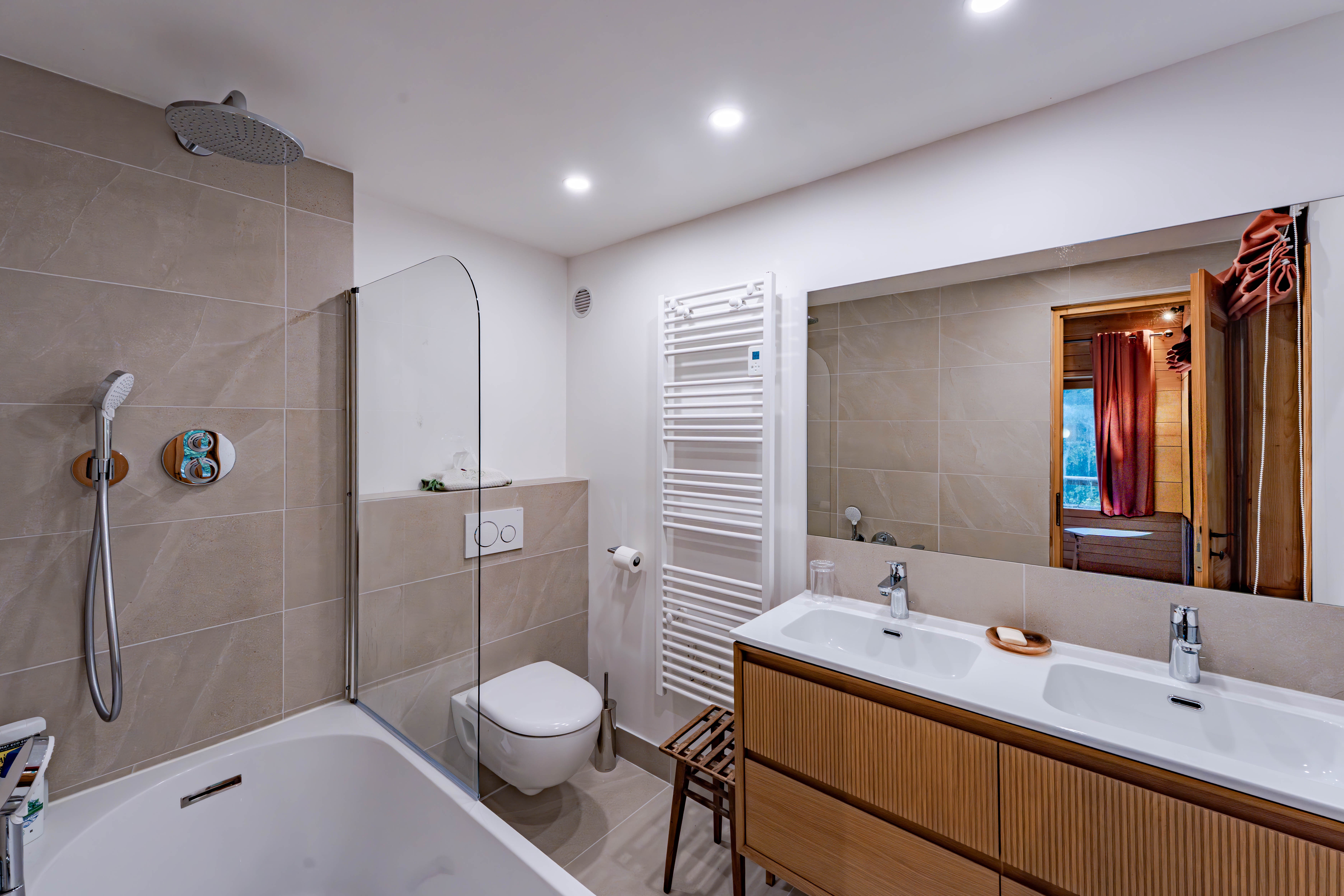 - Chambre Master 4 : lit double avec salle de bain et douche, double vasques et toilette