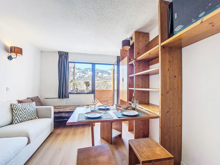 Studio au 6ème étage, situation sud. Complètement rénové en 2025, aménagement fonctionnel et confortable: séjour/salle à manger avec 1 divan-lit (80 cm, longueur 190 cm), 1 divan-lit double (1 x 140 cm, longueur 190 cm), table pour les repas, TV et chauffage électrique. Entrée avec coin-cuisine. Coin cuisine (four, lave-vaisselle, 2 plaques à induction, bouilloire électrique, cafetière électrique, Capsules pour machine à café (Nespresso) (NON INCLUSES), combiné micro-ondes). Salle de bains, WC séparé. Sol en parquet. Petit balcon 3 m2, situation sud. Belle vue sur les montagnes, la vallée, les pistes de ski et la localité. A disposition: Internet (Connexion WIFI, en sus). Veuillez noter: logement non-fumeur. Détecteur de fumée. Annonce d'un particulier (art 155, IV du CGI). 73257011404SB