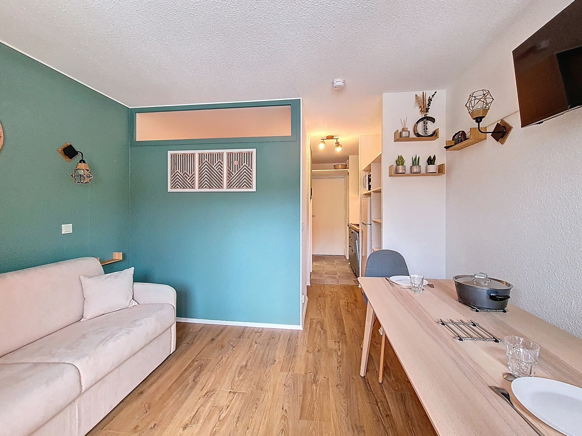 Studio de 23 m² situé au 6éme étage d'une résidence, idéal pour accueillir jusqu'à 4 personnes. Il dispose d’un balcon exposé plein sud, offrant une vue dégagée.