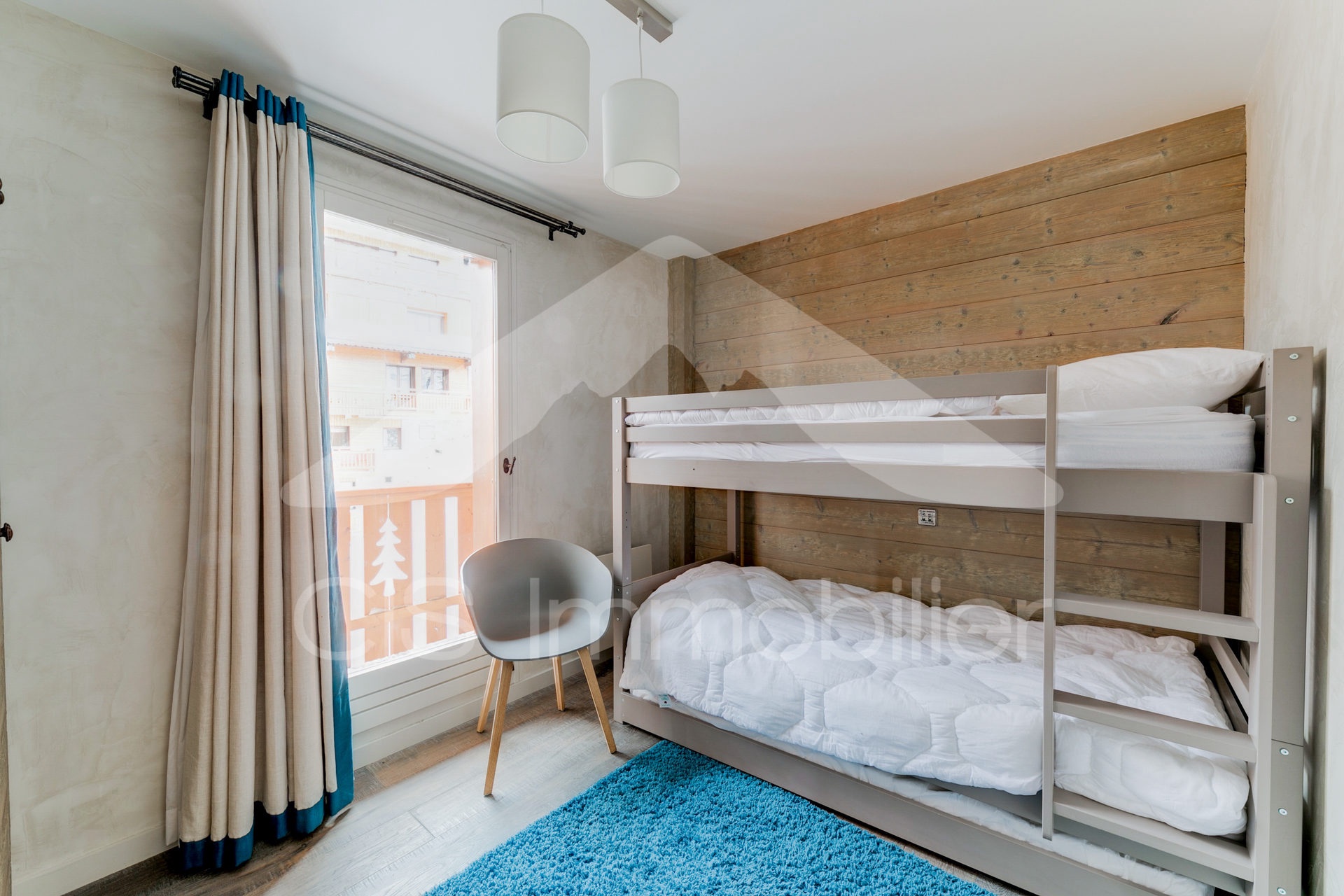 Une chambre avec une ensemble de lits superposés (2 x 80 cm).