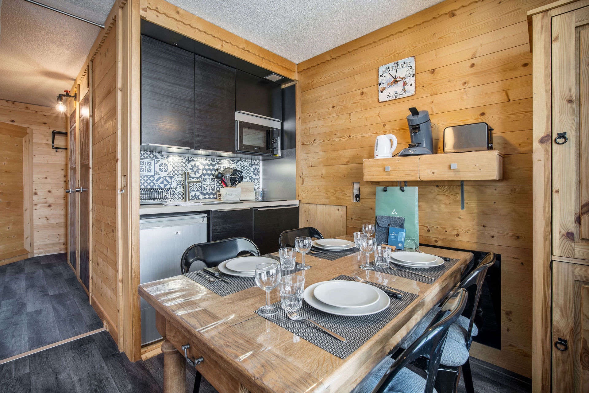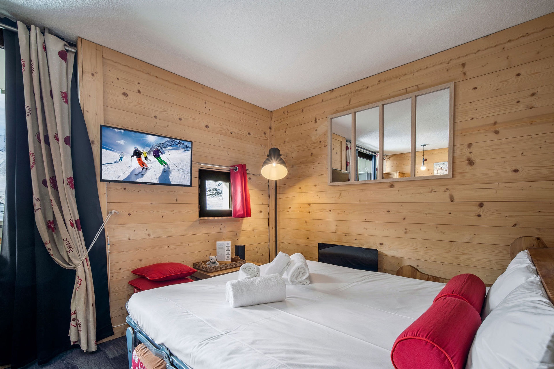 Appartement ski aux pieds situé sur le front de neige de Val Thorens, au 2ème étage d'une petite résidence calme.