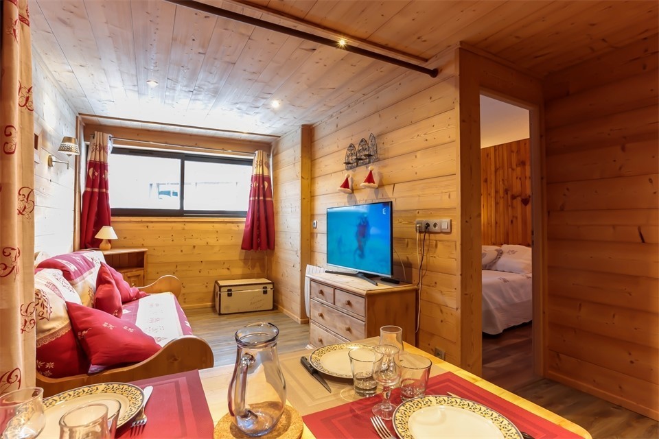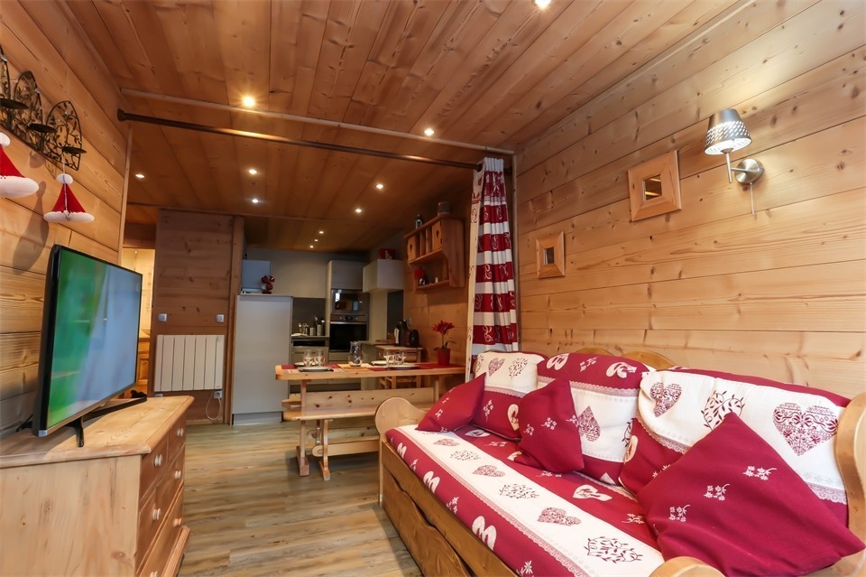 - Séjour équipé d’une banquette gigogne (2 x 90 cm) et d’une TV.