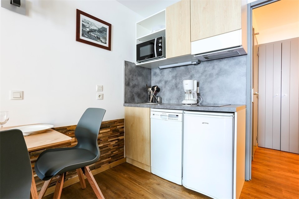 - Kitchenette toute équipée pour 4 personnes avec plaques vitrocéramiques, lave-vaisselle, réfrigérateur, cafetière classique, cafetière Nespresso, grille-pain et bouilloire.