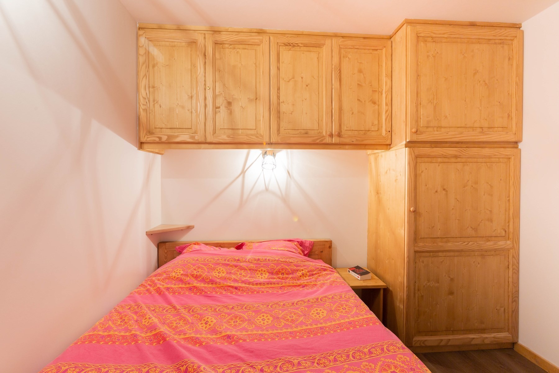 - 1 chambre avec un lit double (140 cm) avec pont de lit pour le rangement, équipé d'une couette et d'oreillers.
