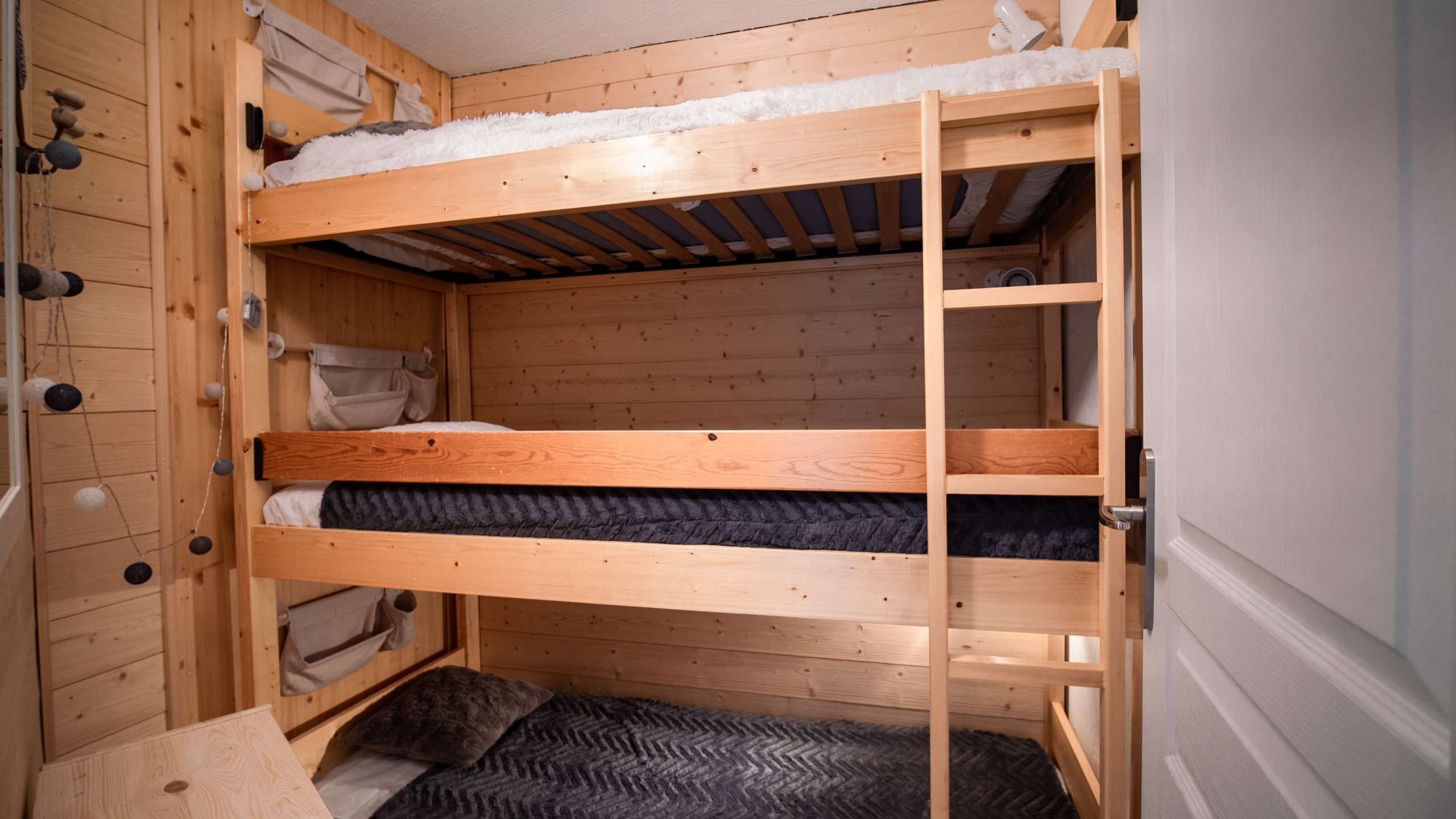 - Deux chambres avec chacune un lit double (140 cm), placard et TV et une cabine avec des lits superposés (90 cm). Tous les lits sont équipés de couettes et d'oreillers.