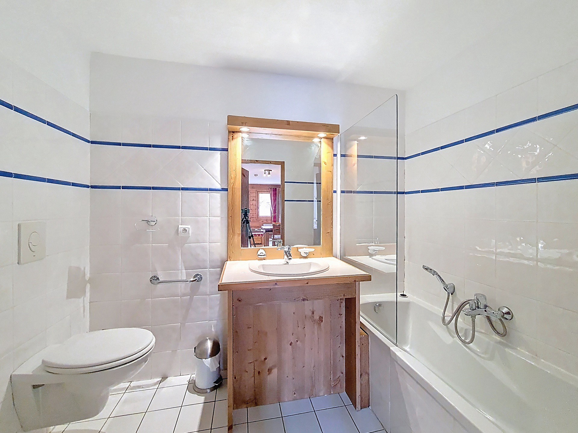 Salle de bain avec baignoire et WC.