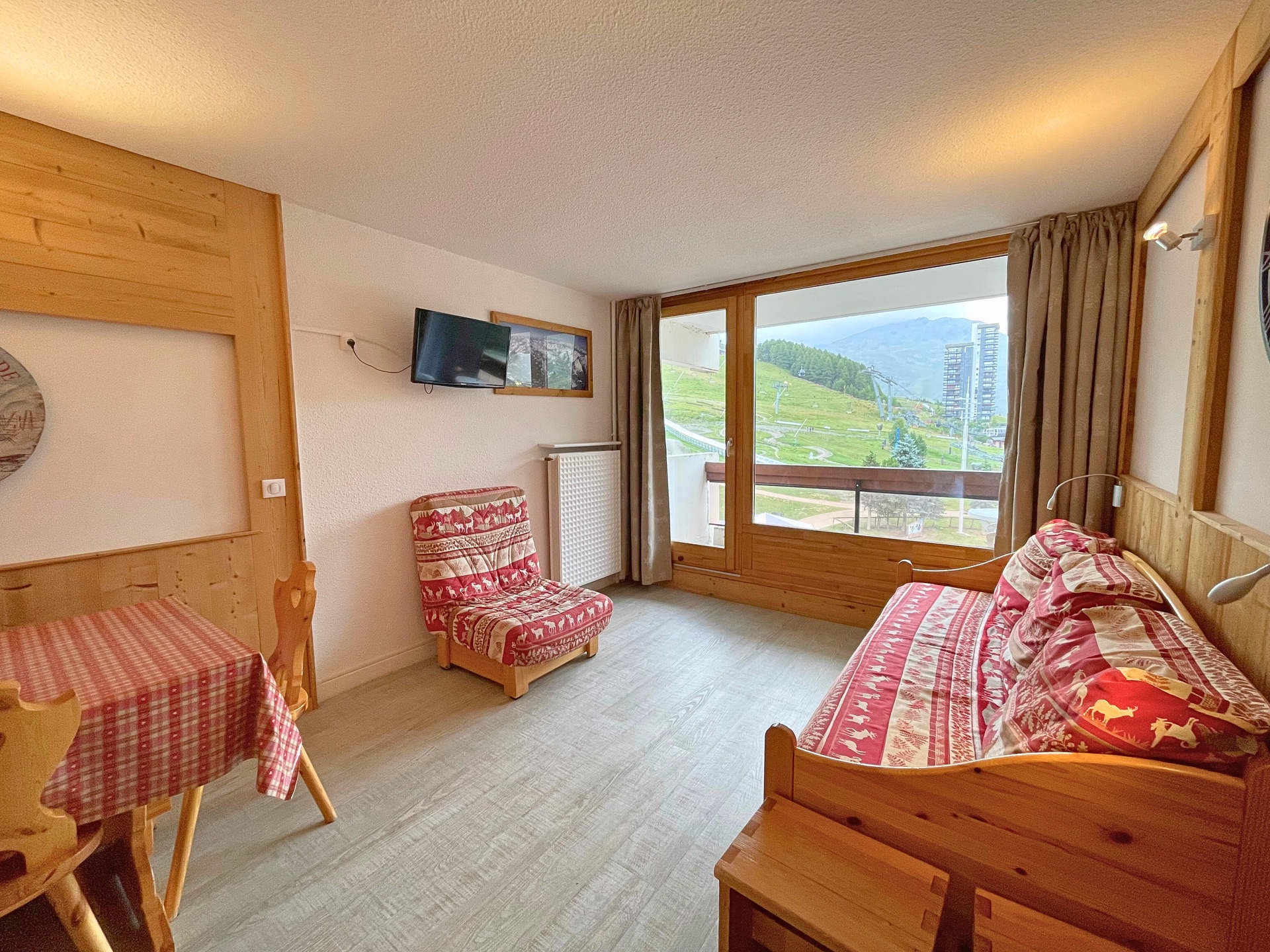 Séjour : banquette lit simple (1x80 cm), lit gigogne simple (1x80 cm), télévision