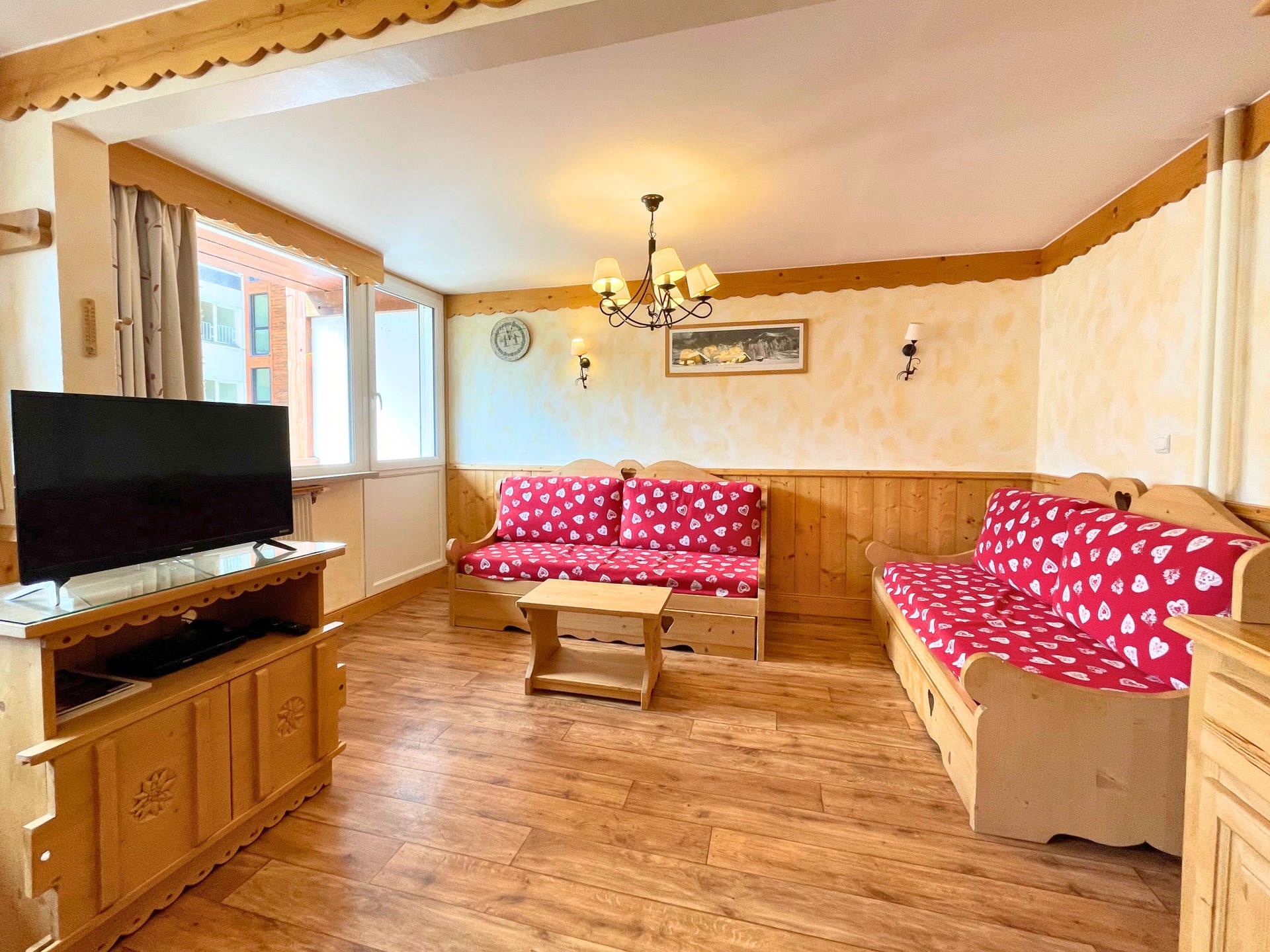 Grand séjour : 1 banquette lit simple (80cm), 1 lit gigogne (2x80cm), télévision