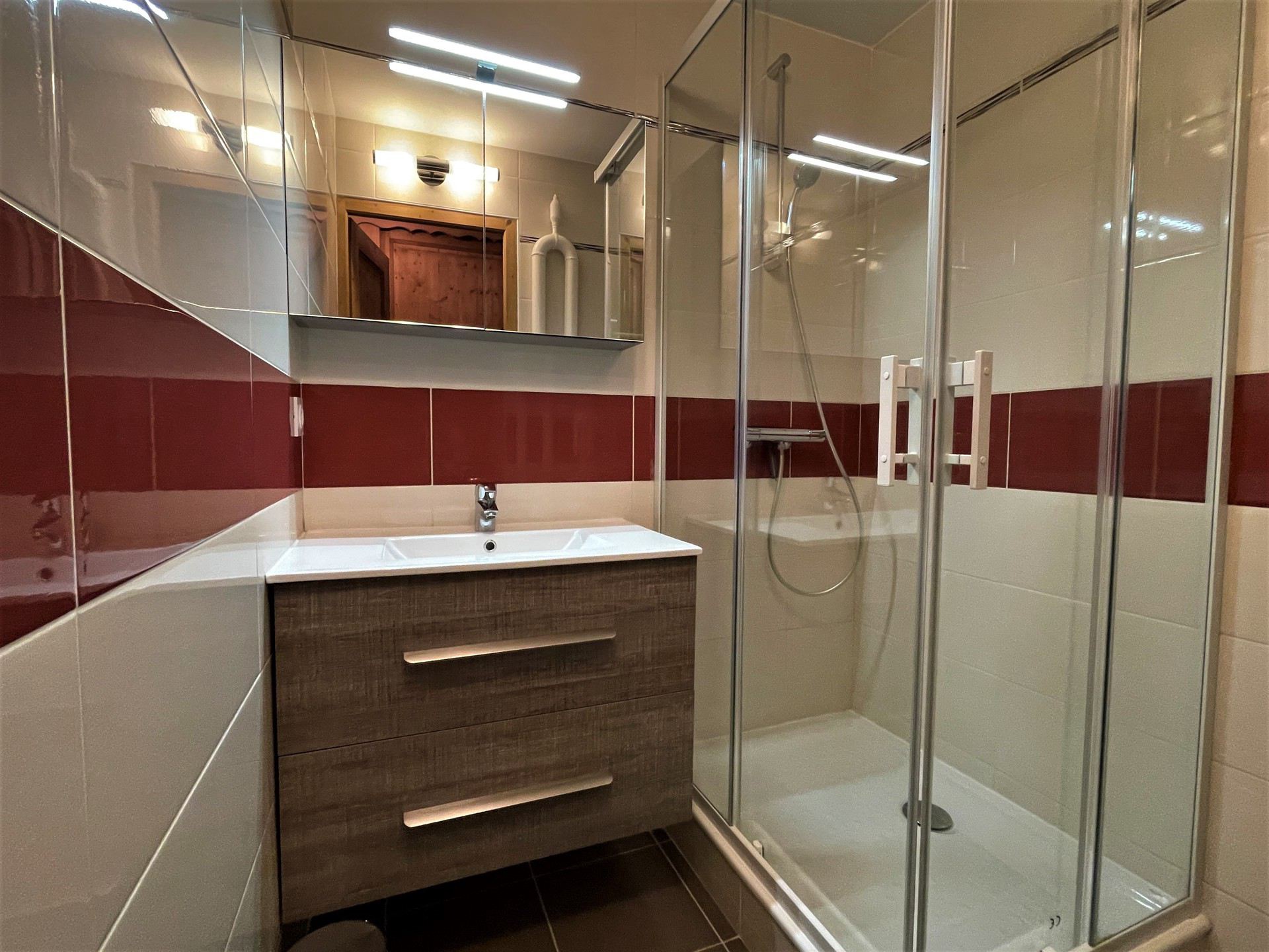 Salle de bain 2 : lavabo, douche, sèche-serviettes,