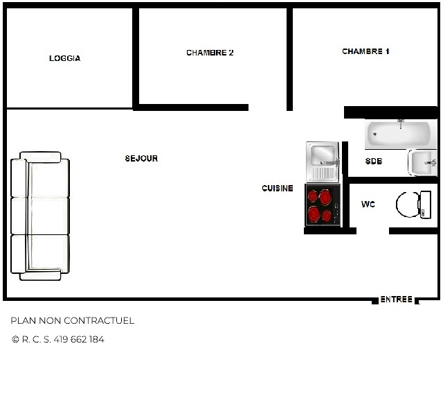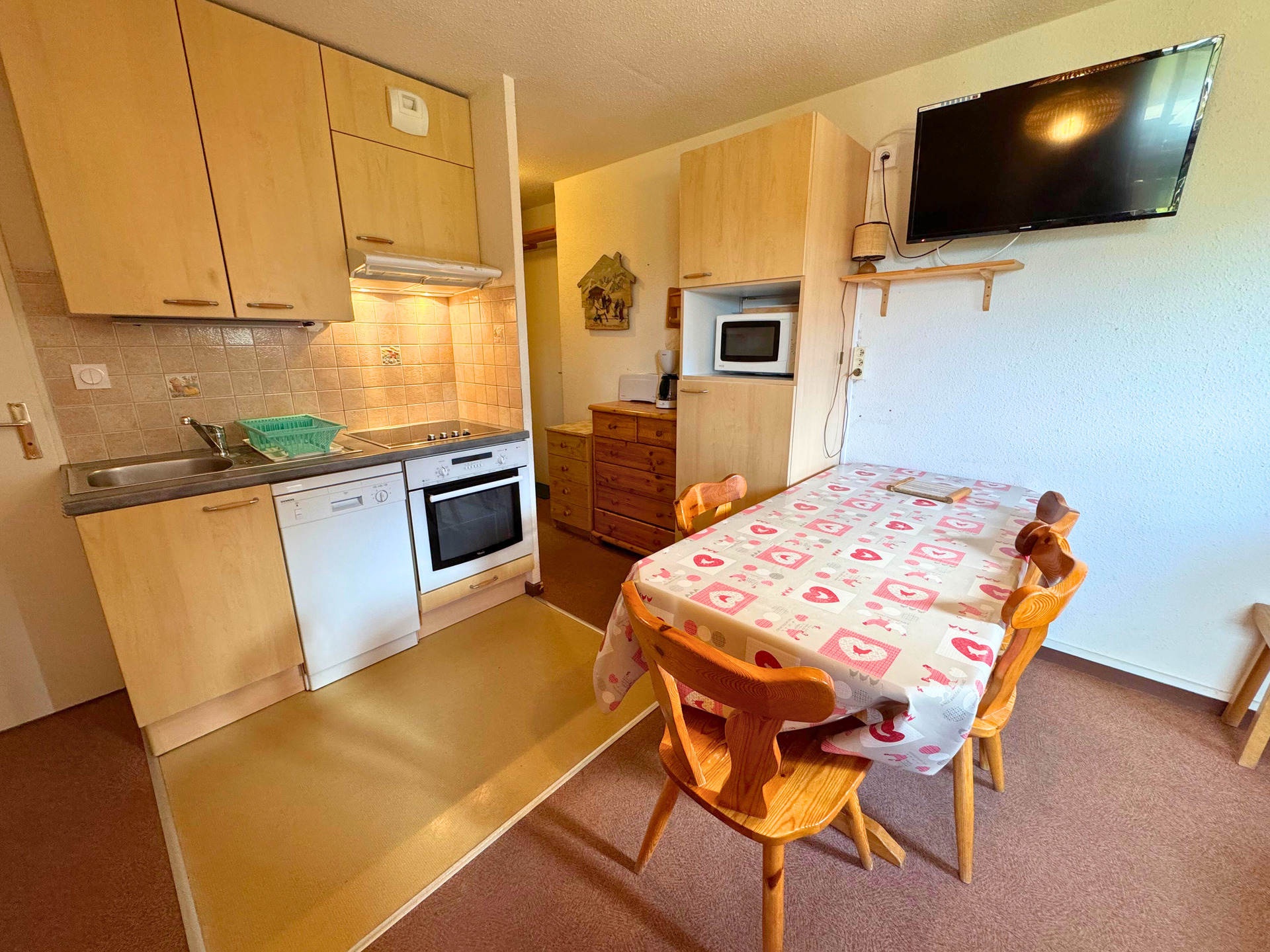 Résidence Ski Soleil bâtiment II (N°2604), 3 pièces pour 5 personnes 28m², au 6ème étage par ascenseur, loggia de 4m² exposée Ouest. Résidence située au pied des pistes