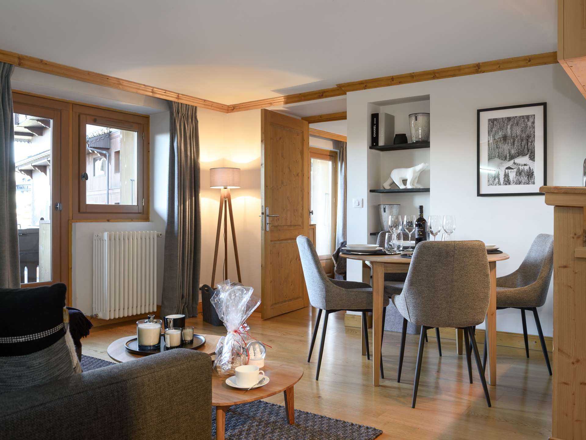 Une décoration soignée et une ambiance chaleureuse pour cet appartement au cœur de la station Courchevel 1850.