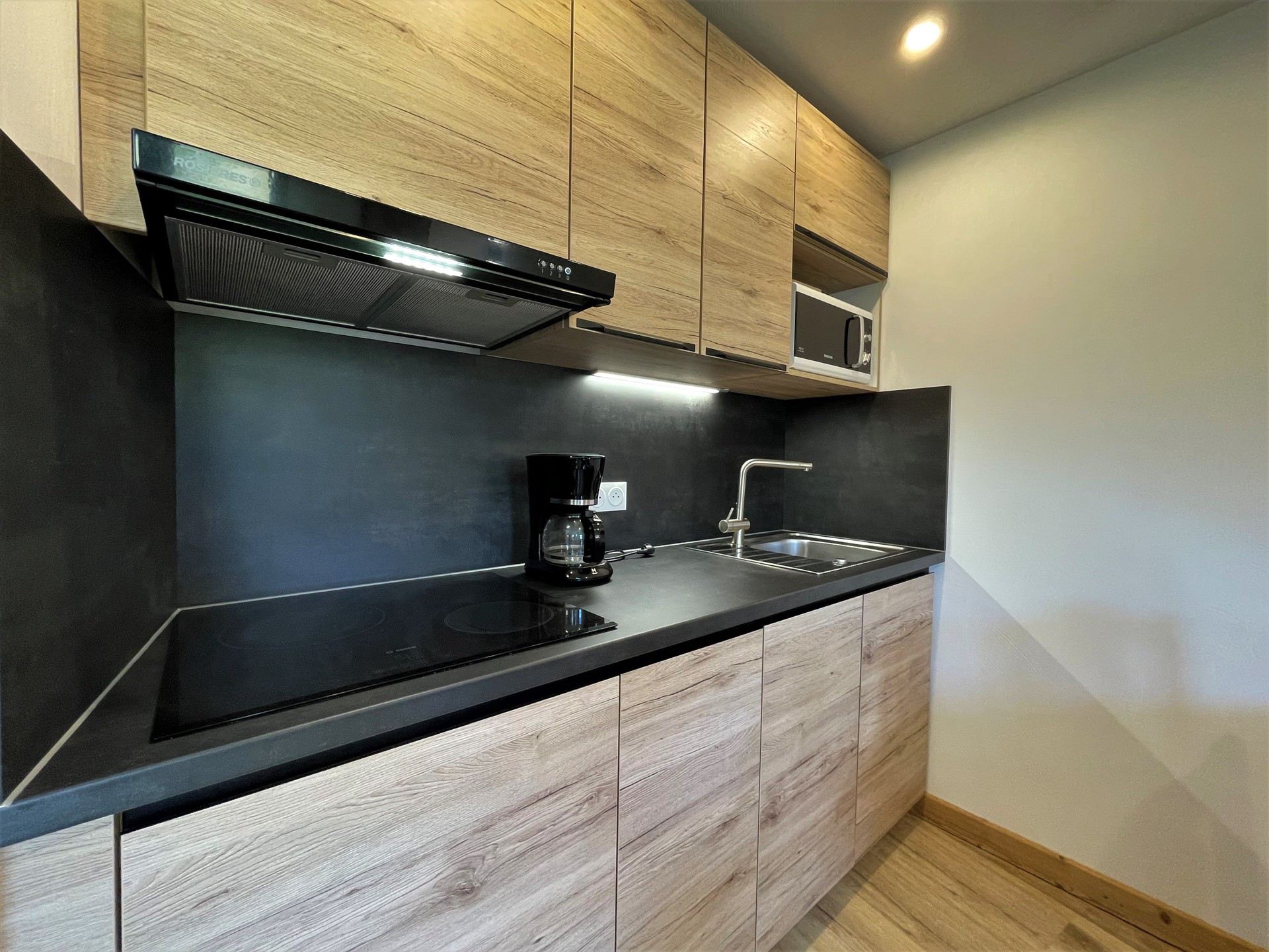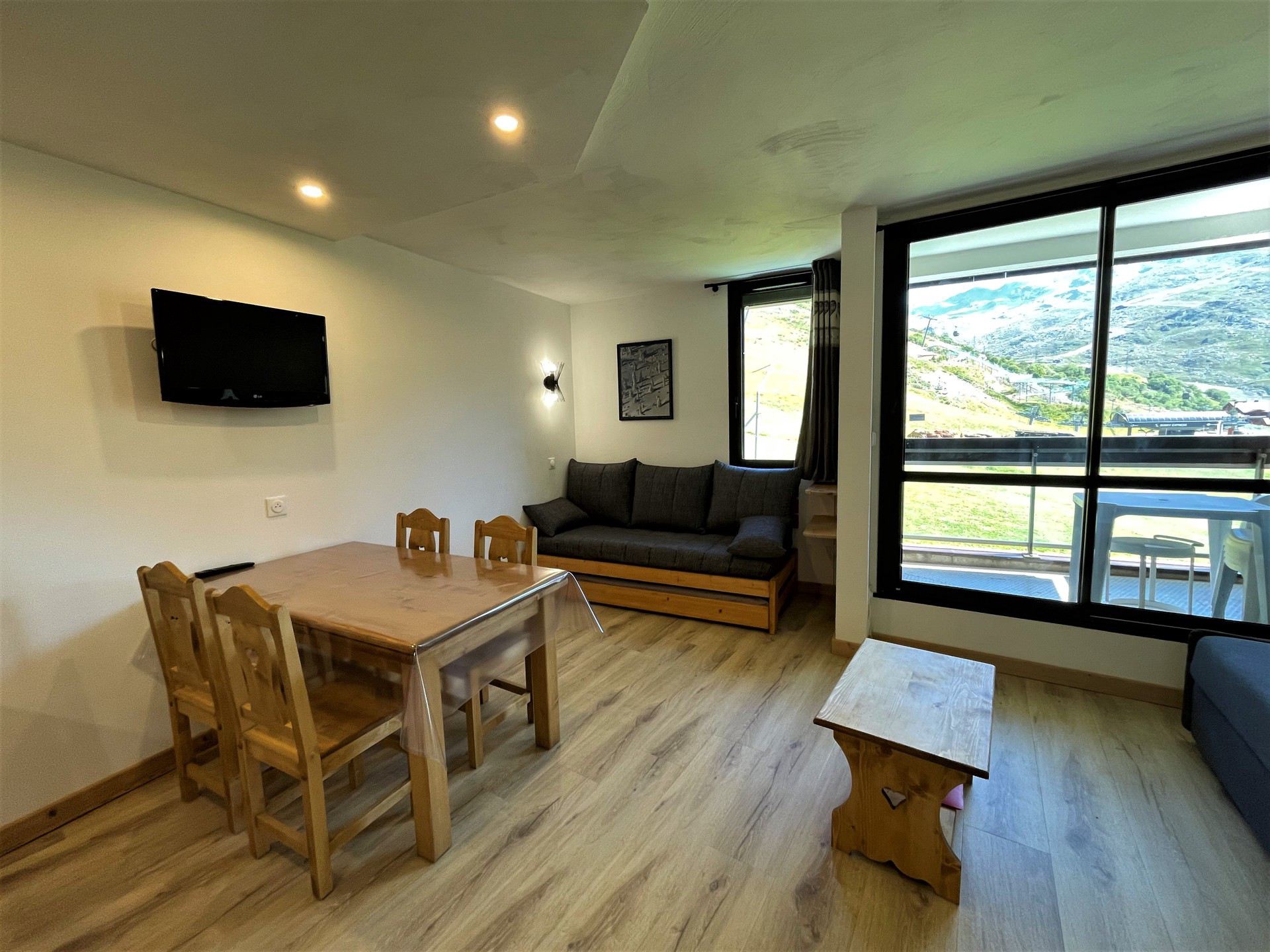 Résidence Soldanelles bâtiment B (N°212), 2 pièces pour 4 personnes 28m², au 2ème étage avec ascenseur, balcon exposé Sud/Sud-Est, résidence aux pieds des pistes. Emplacement dans parking couvert