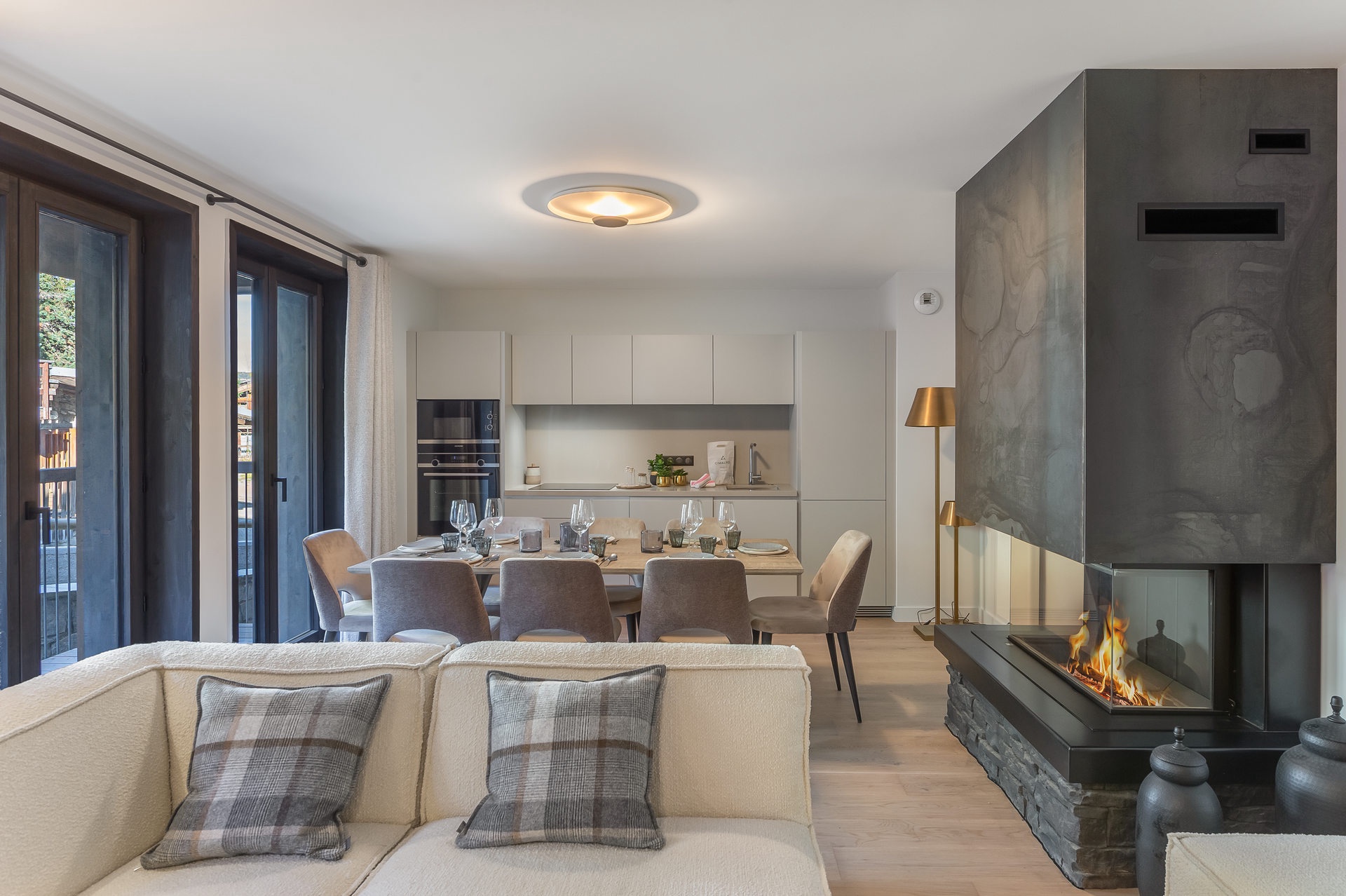 Appartement neuf avec 4 chambres de 117m² pouvant accueillir 8 adultes. Situé dans la résidence ALPAMAYOR à quelques pas des commerces et à deux pas des pistes, cet appartement comprend: