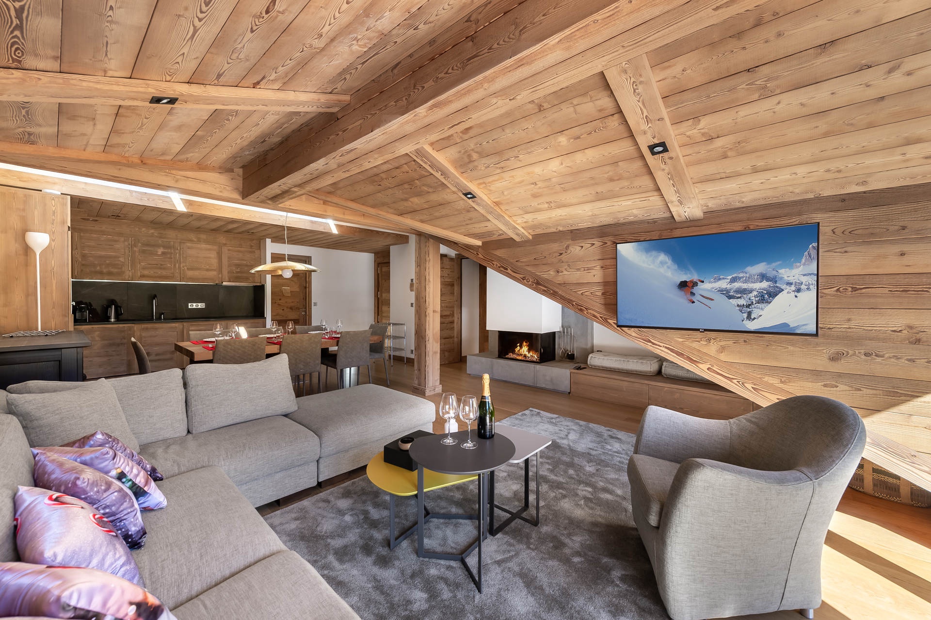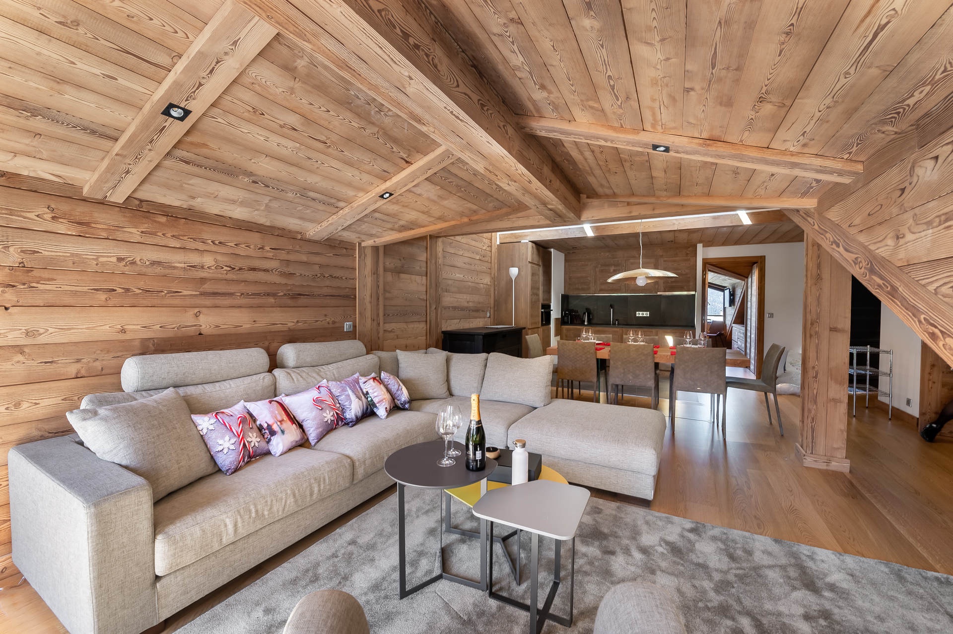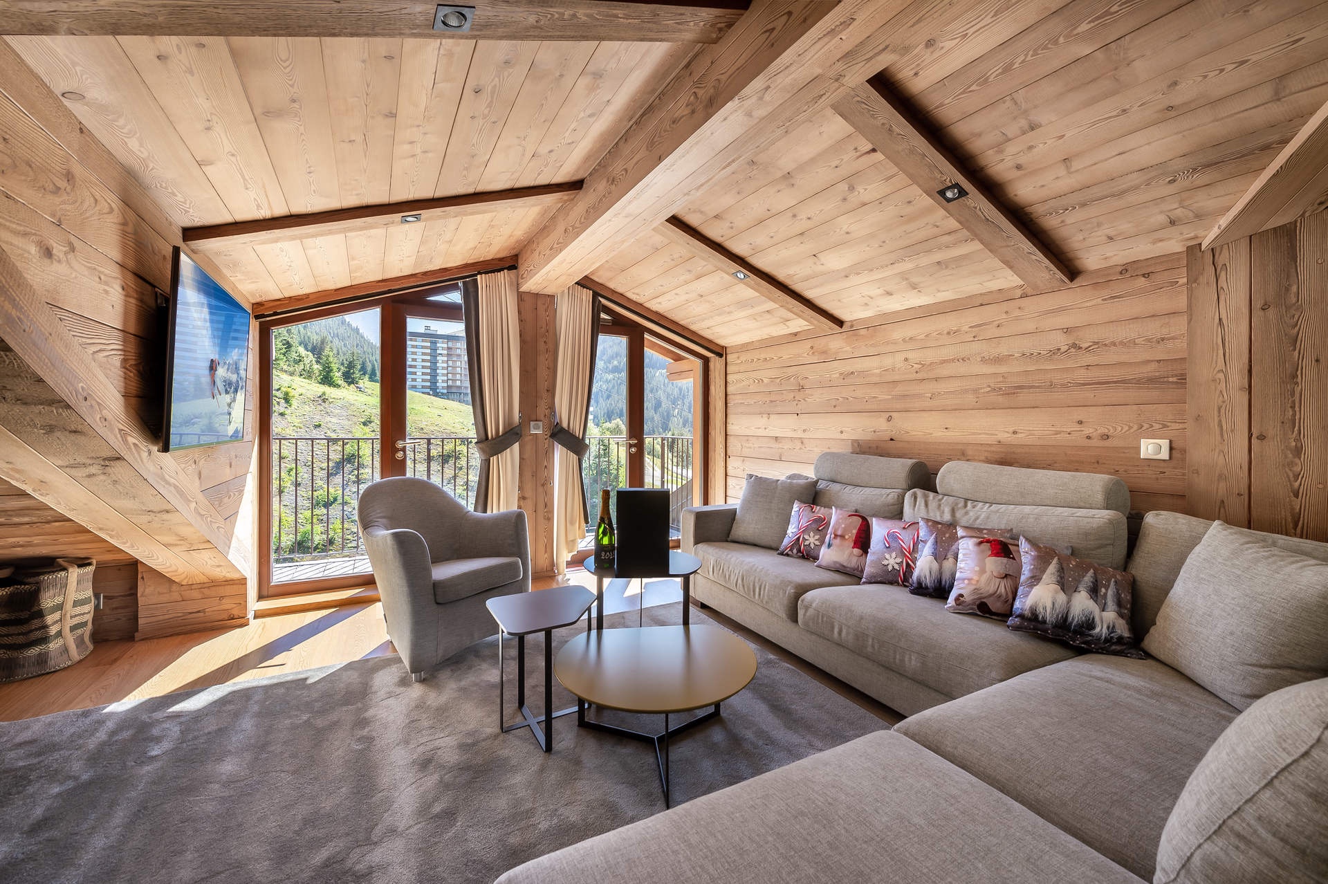D'une superficie de 103m², il peut accueillir 6 adultes et 2 enfants dans ses 3 chambres en suite avec une douche hammam, et son coin montagne.