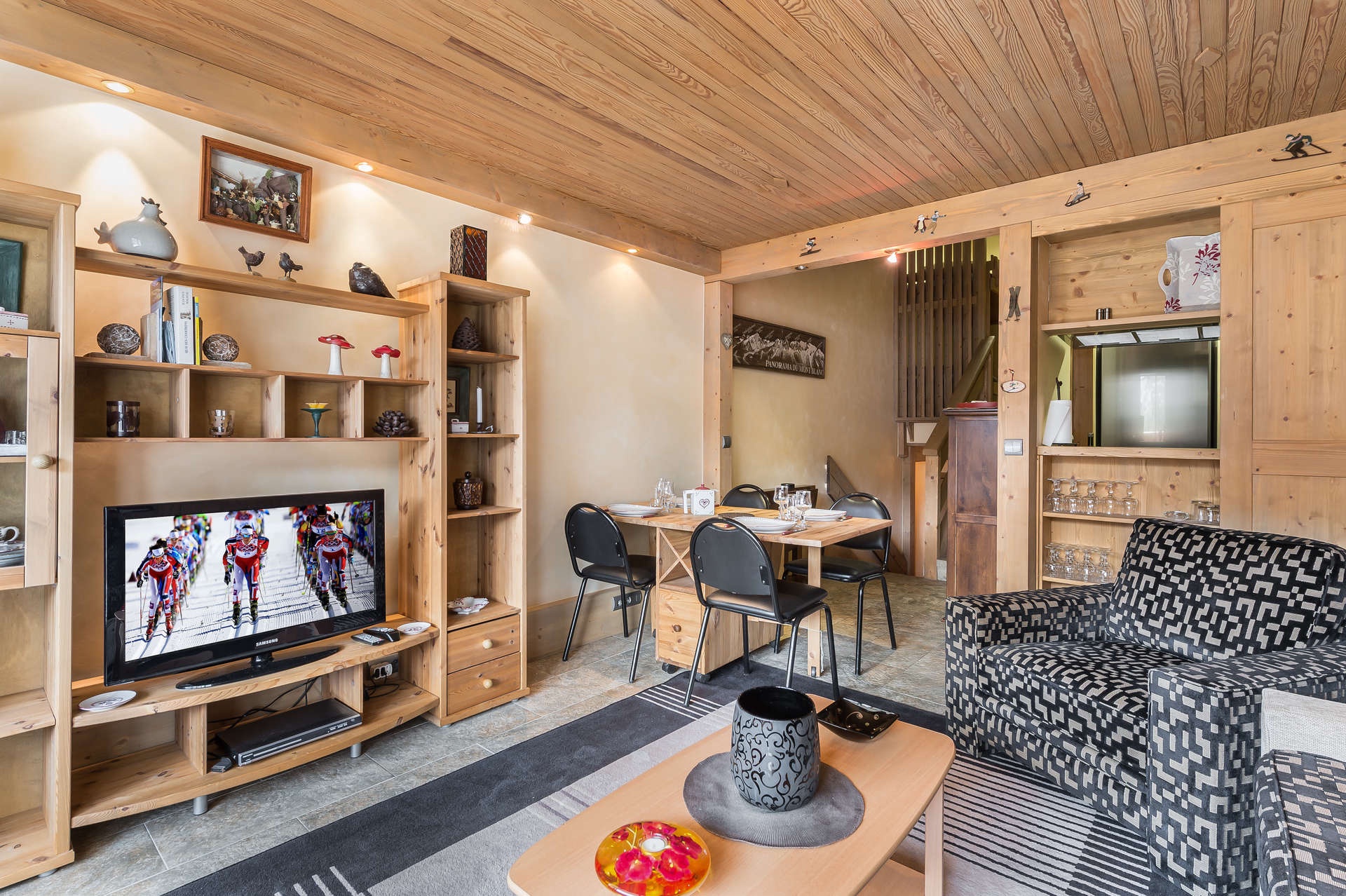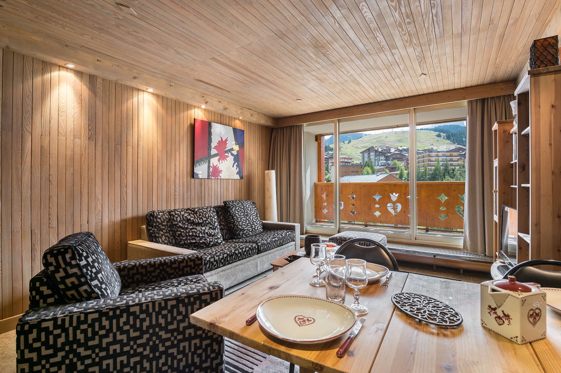 A 5 minutes à pied des commerces et de l'escalator qui conduit aux pistes, cet appartement dispose d'une très belle vue sur la station et les pistes.
